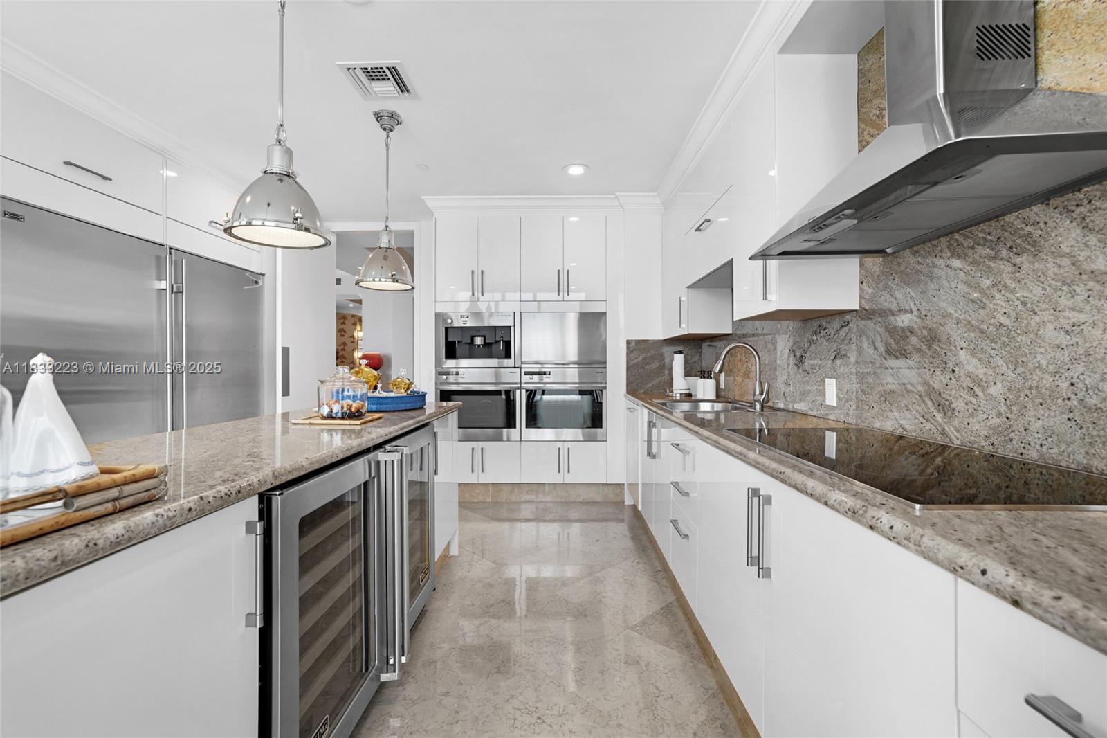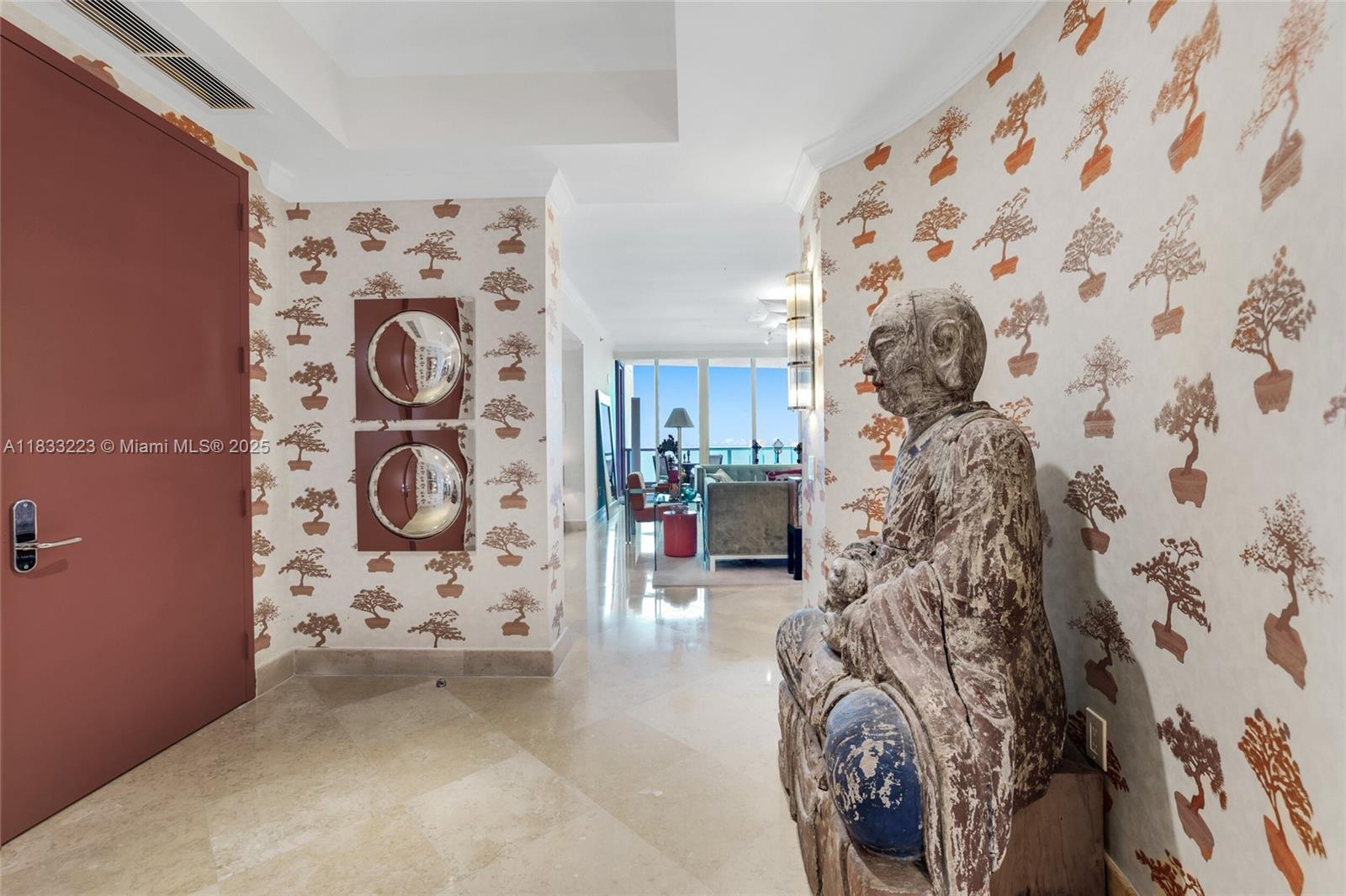 Experience Luxury Living at the Prestigious Bath Club in this Beautiful 4 Beds/3.5 bath residence. Enjoy breathtaking, unobstructed views of the ocean and bay with 3,982 square feet of interior space and over 500 sqft of Private Terraces. This Refined home features 10-foot ceilings, a private elevator entrance, 3 Parking Spaces, and custom Designer finishes. The European-style kitchen is equipped with top-tier Sub-Zero and Miele appliances. The expansive principal suite includes two walk-in closets, and a spa bathroom, Residents enjoy five-star amenities: 570 feet of beachfront, a lap pool and outdoor spa, private cabanas, two clay tennis courts, valet service, a state-of-the-art gym, 24-hour security, and fine in-house dining in a private club setting.
