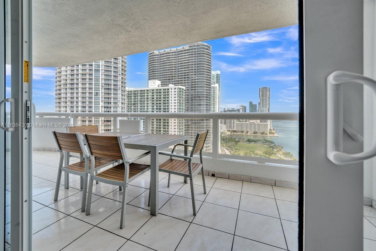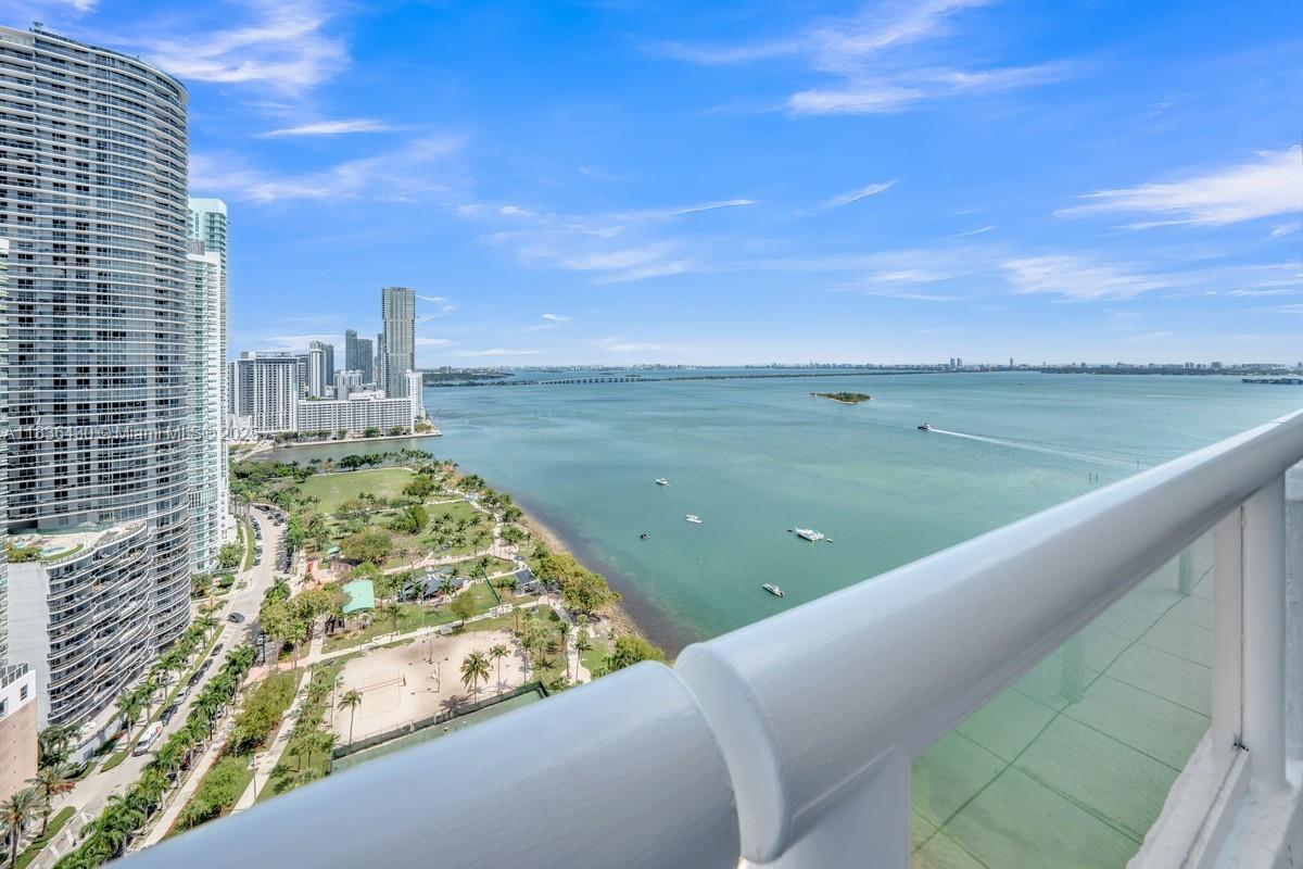 Breathtaking bay and ocean views from huge balcony of this giant 1Bedroom 1.5 Bath Condo 1048 soft in the Double Tree Hilton/The Grand Condominium. Building features a large pool and 4 hot tubs/jacuzzis on 10th Floor and 24-hr fitness center. Tile floors throughout the home with a large bathroom with both a shower and bathtub. Oversized walk-in closet like another small room's worth of space. Modern washer and dryer in the unit. Kitchen features granite countertops and white cabinetry. Balcony access from both the living room and the bedroom with extra deep balcony to easily have a full outdoor dining table and lounge area over-looking Margaret Pace Park and the bay and ocean views. Spectacular home to make your own.