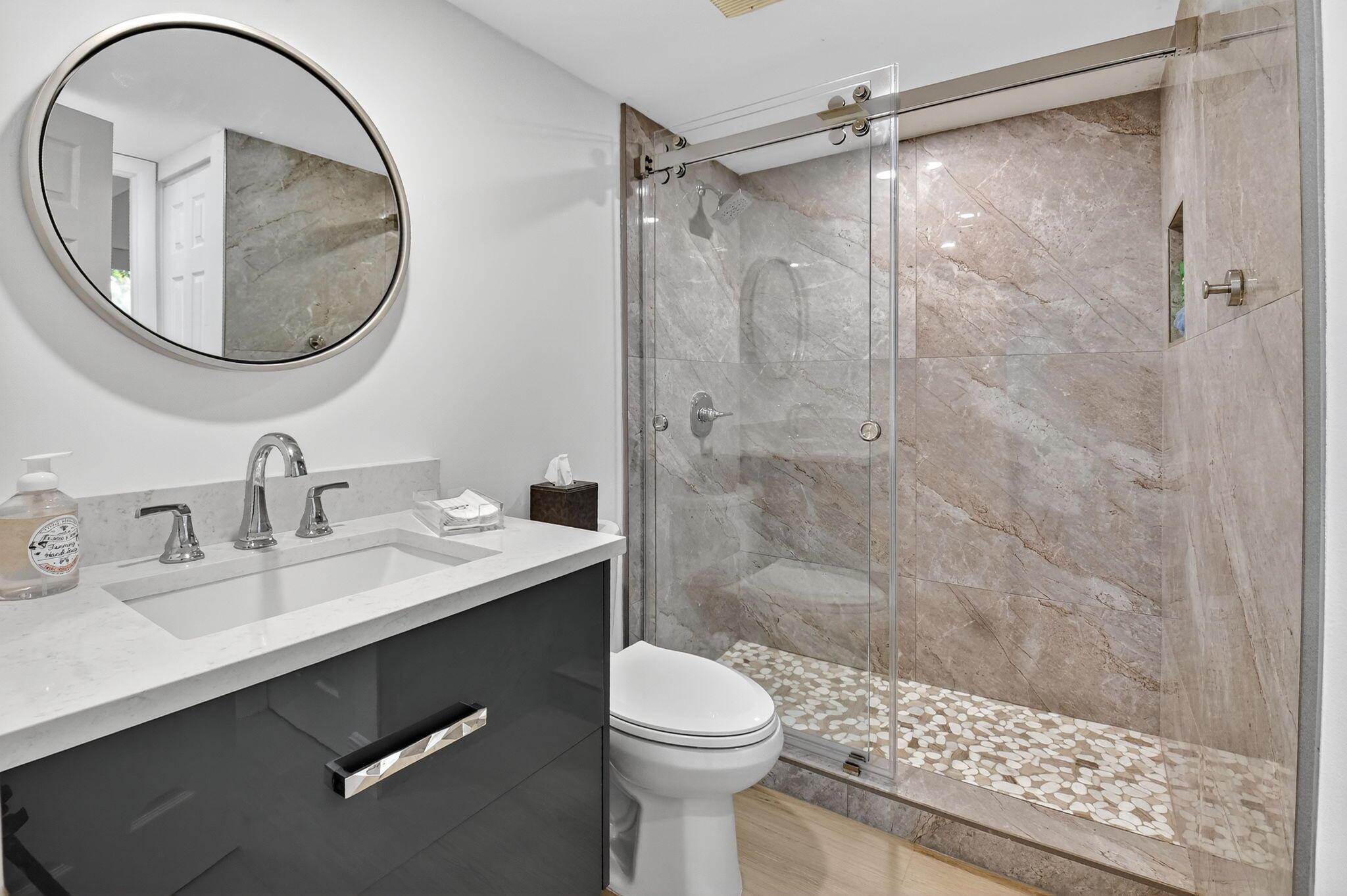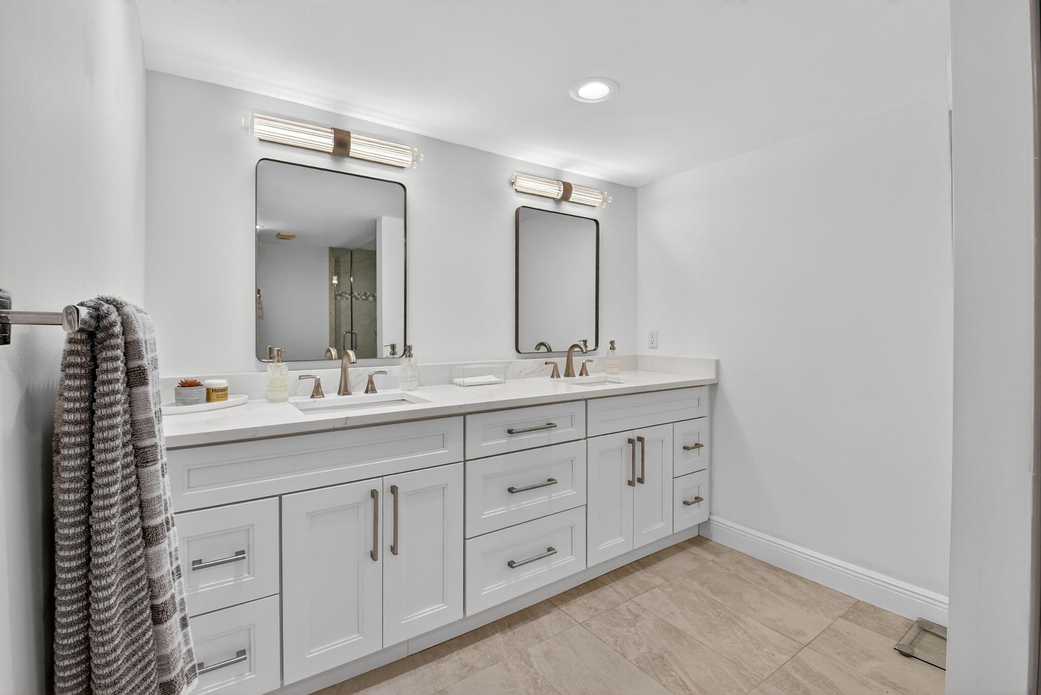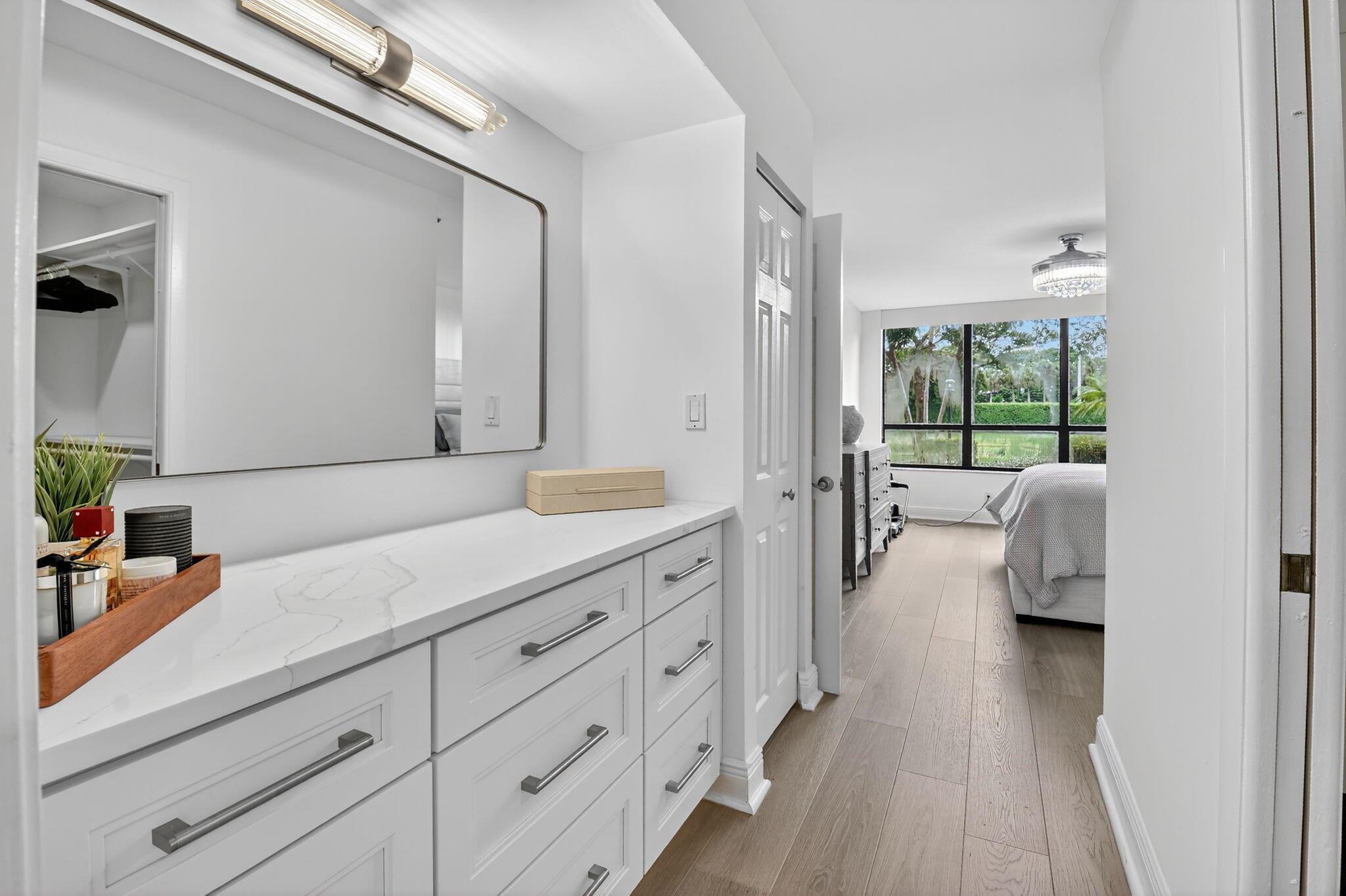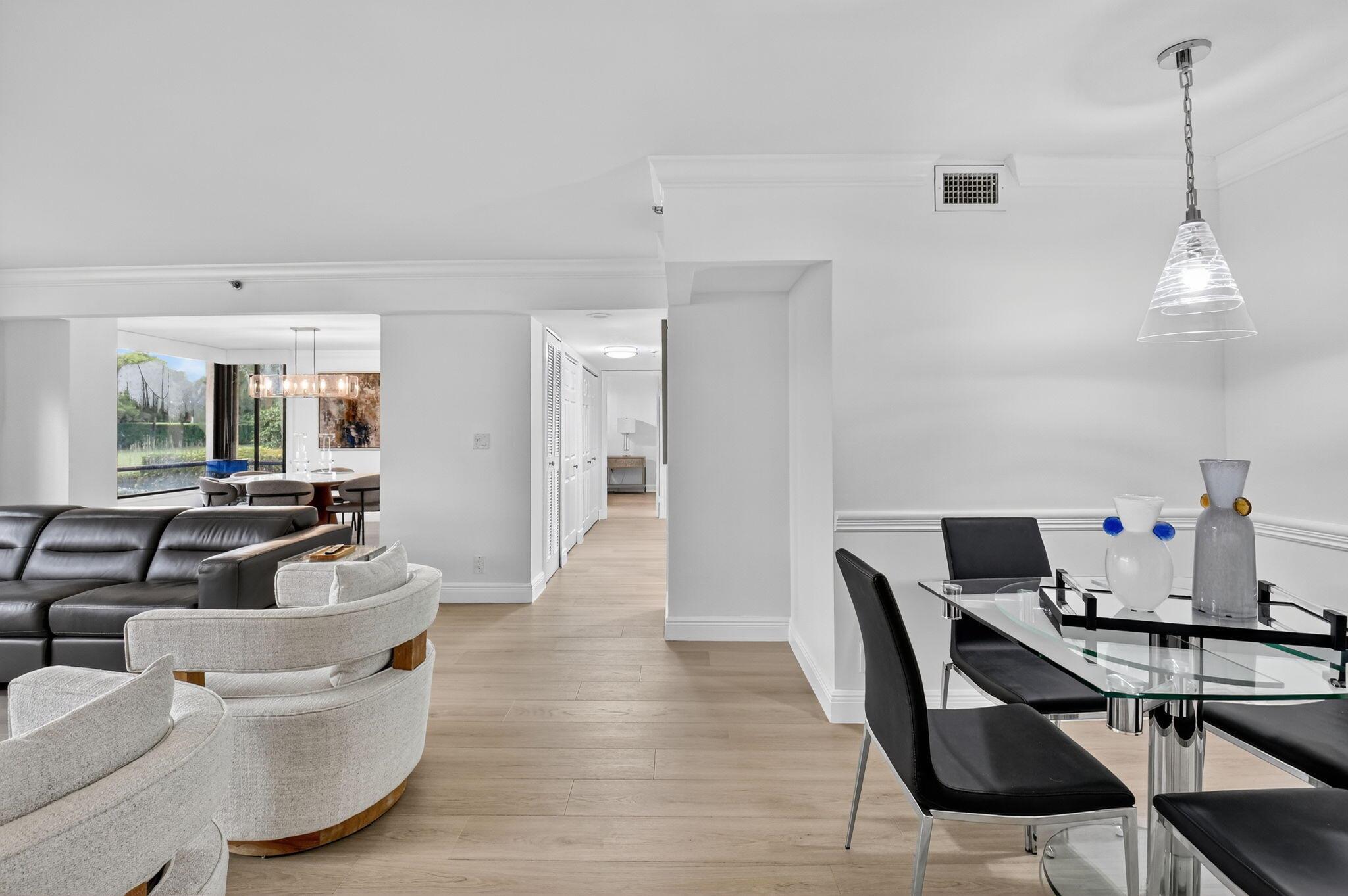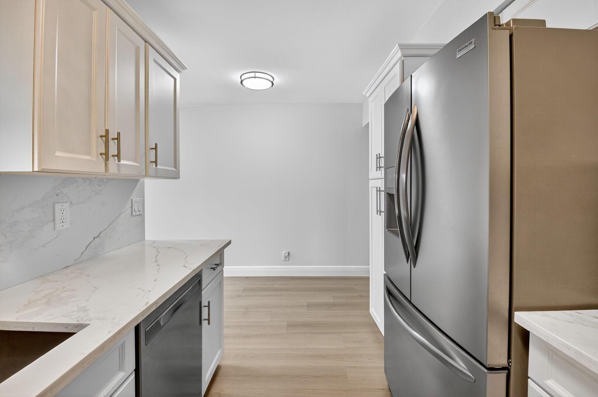 This home shows like a model and is priced to sell. Newly renovated 2 bedroom 2 bath condo on desirable first floor. This unit has recently renovated bathrooms with beautiful quartz countertops and top of the line fixtures. You will find new premium waterproof Karastan flooring in all living areas and bedrooms. The kitchen is equipped with Stainless Steel appliances including a new dishwasher and updated French Door refrigerator. A new water heater was installed in 2025. The interior has been freshly painted and new light fixtures have been installed throughout the home. Promenade is a gated community as well as requiring a security code to enter the entrance to your building. The dining room could easily be converted into a 3rd bedroom.