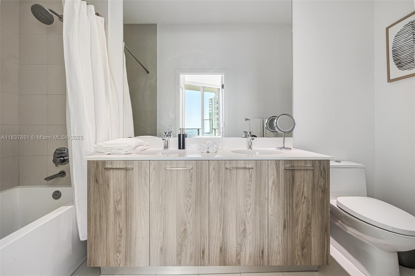 Own Miami's ultimate luxury with this upscale 1-bedroom plus den (746 SF) condo in Edgewater. Enjoy 12 ft ceilings, stylish furnishings, premium amenities, and breathtaking views of Downtown and Miami Beach Skyline. Plus, the building offers a wealth of amenities including a tennis court, two pools, BBQ area, kids room, social room, sauna, fitness room, theater, valet, front desk 24/7, and billiard room. Condo comes with one assigned parking, and one storage room located on the second floor under AC. Building allows 12 rentals per year, min 30 days.