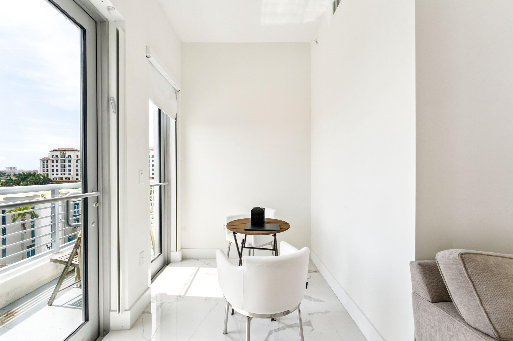 Downtown Boca Living with Expansive Ocean-View TerraceThis premier Southeast corner residence at Tower 155 offers over 2,400 square feet of thoughtfully designed indoor-outdoor living. A rare 621-square-foot terrace captures both ocean views and city skyline, creating the perfect setting for sunrise mornings and sunset entertaining.The interior layout is open and bright, with 10-foot ceilings and natural light from every angle. The chef's kitchen is outfitted with custom Italian cabinetry, quartz countertops, a waterfall center island, Bosch appliances, and a double wall oven. Italian porcelain tile runs throughout the home, and the primary suite includes a walk-in closet and spa-style bath with floating dual-sink vanity and designer fixtures.