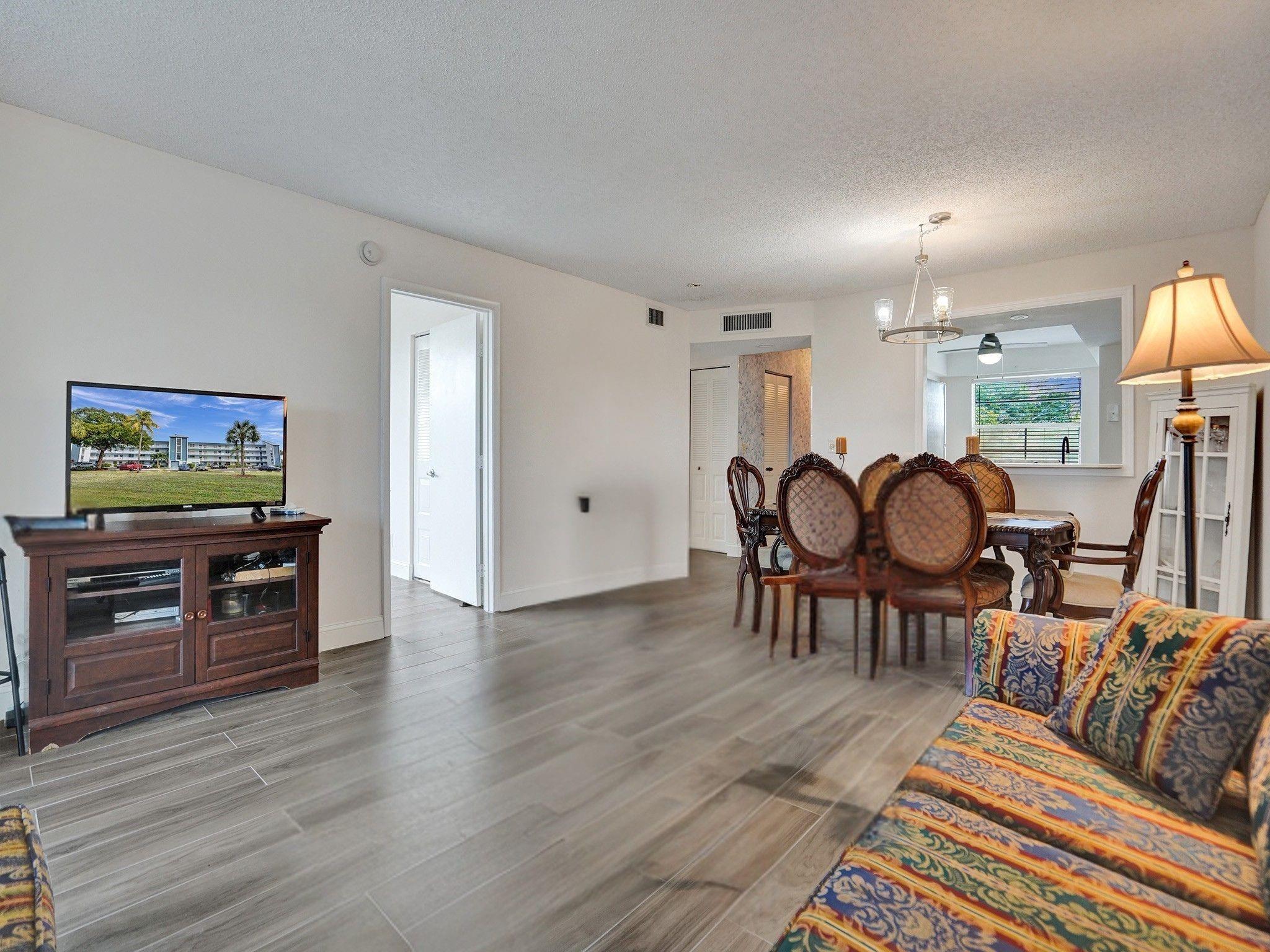 Welcome To Your Hidden Slice Of Paradise! Stunning 2/2 Offers Breathtaking Panoramic Views Of A Lush Golf Course, Tranquil Waterways & American Flag Proudly Waving In The Distance, Visible From Multiple Rooms. Step Inside & Feel The Light, Airy Vibe w/ New Porcelain Tile Floors. This Home Has Been Thoughtfully Updated W/ SS Appliances, Sleek LED Recessed Lighting & Ample Storage In The Spacious Kitchen, Primary Suite Is A True Retreat w/ Oversized Windows Showcasing Even More Of Those Mesmerizing Views, Walk-In Closet & Luxuriously Spa-Style Ensuite. Guest Room Is Equally Charming Perfect For Family, A Home Office, Or Flex Room. Complete With An IN UNIT WASHER/DRYER! Enjoy Serene Beauty Of 55+ Living & Convenience. Credit 675, POI $32k, 3 Mo Dues Up Front, 20% Down Per Assoc.