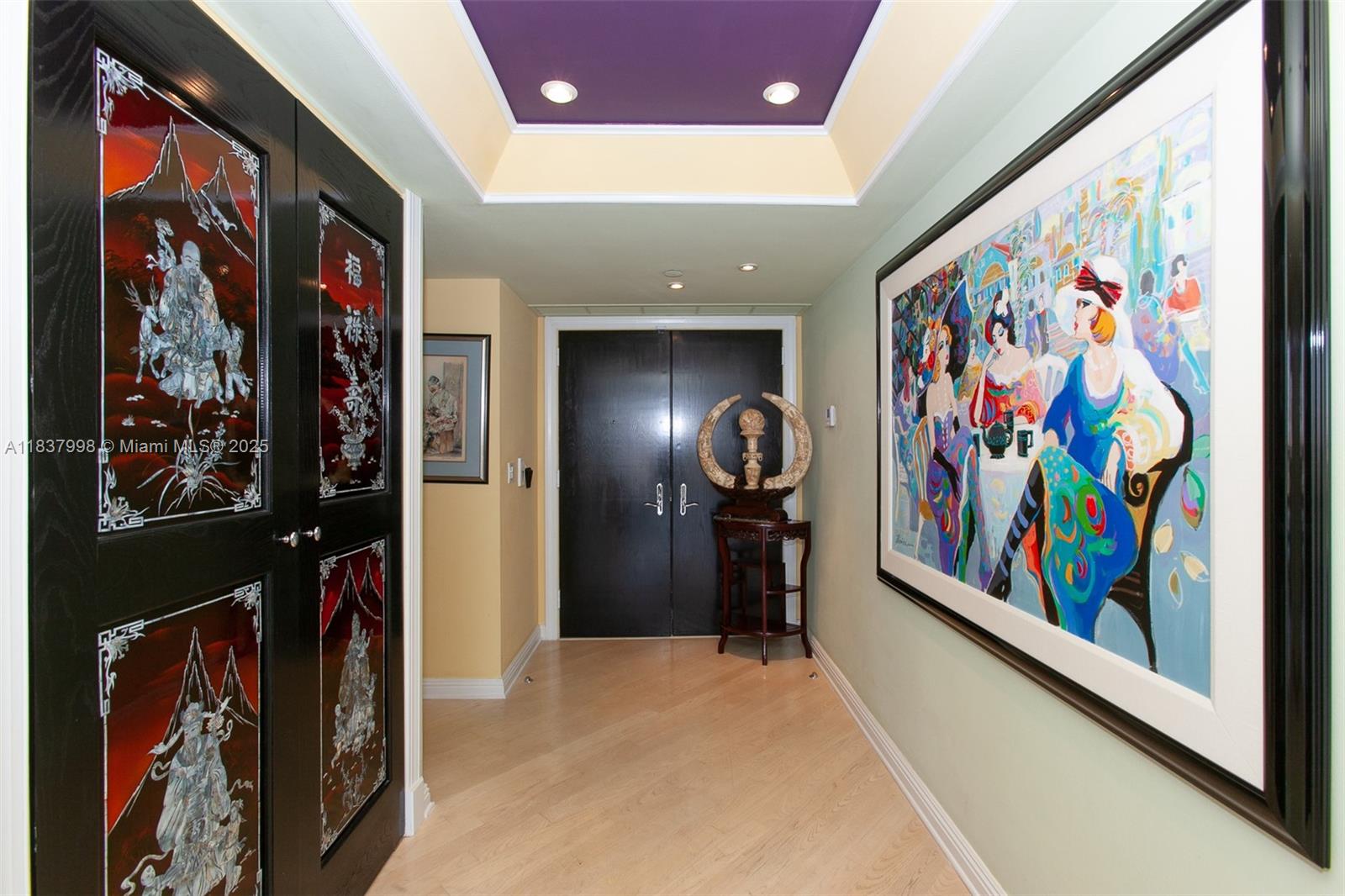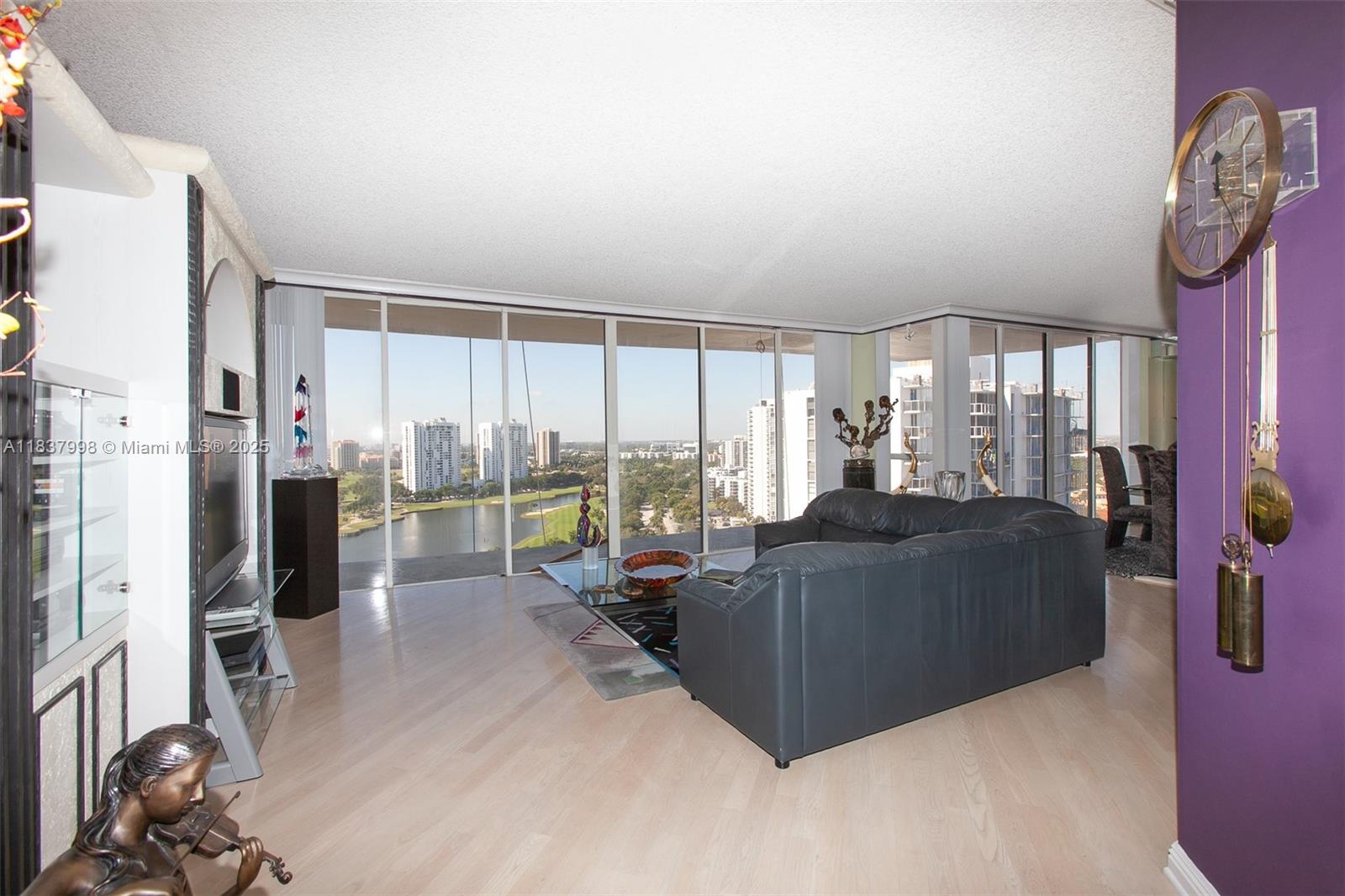 ENTER THROUGH DOUBLE DOORS & SEE THE BEST VIEWS OF THE GOLF COURSE, INTRACOASTAL, & CITY. SPACIOUS 1800SF CORNER UNIT W/WRAPAROUND BALCONY FOR SUNSET VIEWS. FINISHES INCLUDE WOOD FLOORS, GRANITE COUNTERS, ITALIAN MURANO, CUSTOM CLOSETS. NEW CUSTOM KITCHEN W/ALL NEW APPLIANCES, NEW BATHROOMS. SPACIOUS SPLIT BEDROOM PLAN. RESORT STYLE AMENITIES: POOL WITH HUGE DECK & BBQ, GYM, MEDIA RM, LIBRARY, EVENT ROOM, ENTER CLUB HOUSE TO THE SECOND POOL ON THE INTRACOASTAL, NEW GYM, SAUNA, SPA, RACQUETBALL & TENNIS COURTS, KIDS ROOM, CARD RM, ROOM SERVICE, FULL MOVIE THEATER, ALSO CAFE WITH OUTDOOR SEATING & MUCH MORE! CLOSE TO AVENTURA MALL, RESTAURANTS, CASINOS, 5 MIN TO THE BEACH, NEAR 2 INT'L AIRPORTS. NEXT TO SOFFER EXERCISE TRAIL ON GOLF COURSE. ALL ASSESSMENTS HAVE BEEN PAID BY SELLER.