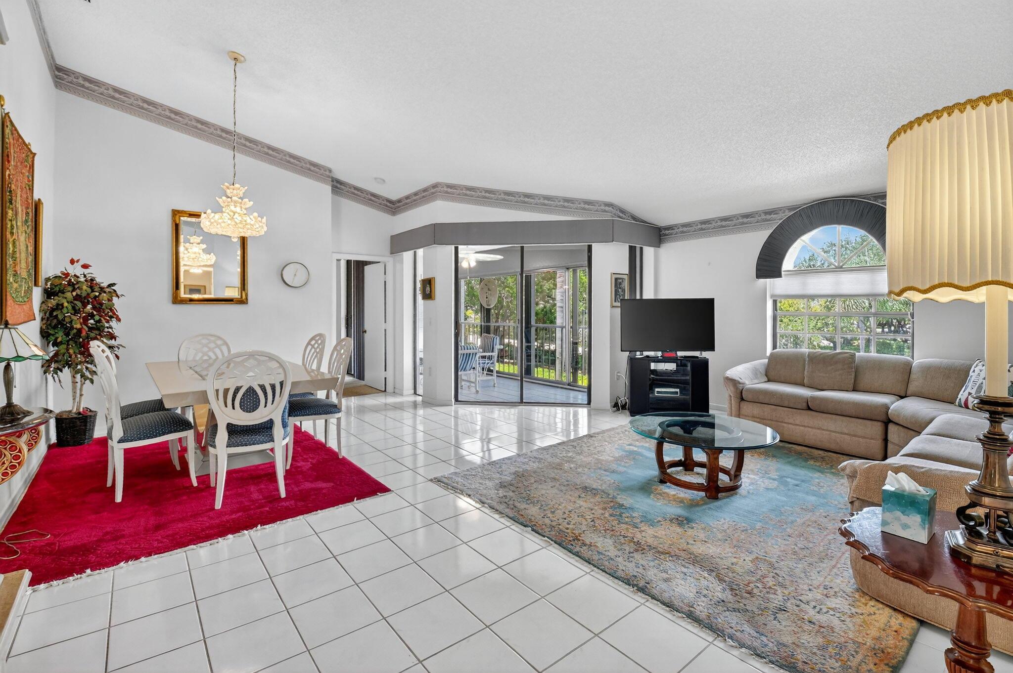 This two bedroom plus den, two full bath condo offers care-free, resort-style living. It is just a short walk from the vibrant 20,000 square foot clubhouse and an array of exceptional amenities. Access your upstairs living space using your private staircase or exclusive elevator--perfect for accessibility and ease of entry. The open, split floor plan ensures privacy and flow, with soaring ceilings creating an airy, inviting ambiance throughout. The spacious eat-in kitchen has abundant storage and a generous pantry for all your essentials. The master suite features a custom-fitted walk-in closet and a large bathroom complete with dual sinks, a vanity, and both a handicap accessible shower and a regular walk-in shower--designed to cater to every need.