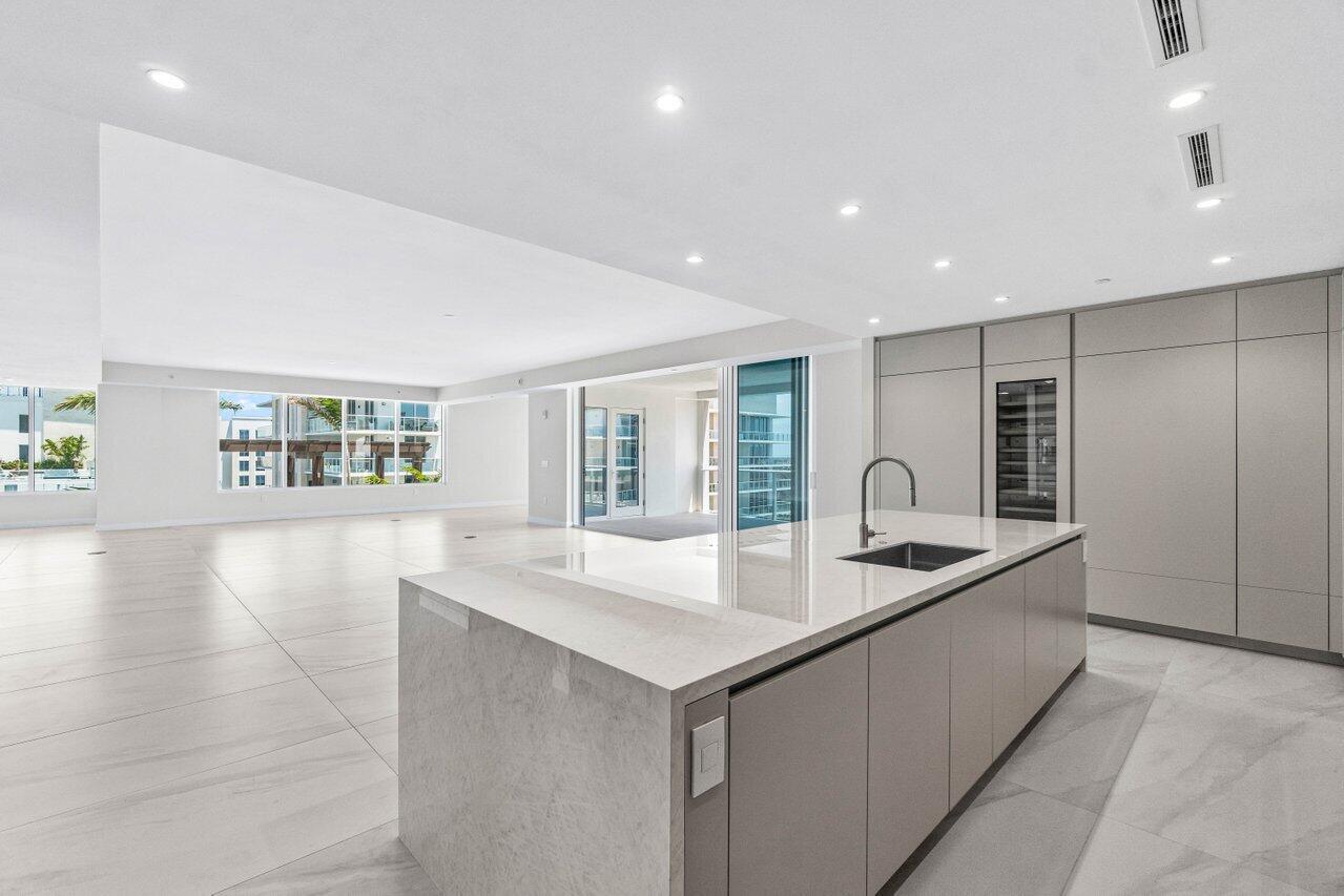 Palace in the sky!! This Spectacular 4 Bedroom plus Den Boasts Direct Ocean, Golf Course, & Garden Views from every room of this lower PH Residence at ALINA 220! A massive, almost 1000 Sq. Ft. Terrace with a Summer Kitchen flanks the entire Eastern-Facing Side of this 5300+ Sq. Ft. Condo! Step out of your Private Elevator Vestibule through Double Doors into your amazing entertaining space, complete with a Custom Chef's Kitchen adorned by a full bevy of Gaggenau Appliances! The 4.5 Bathrooms are all crafted by Porcelanosa, the closet space is abundant, and the 4th Bedroom has a secret hidden kitchen, making it the perfect ''mother-in-law'' suite! Located in Downtown Boca's newest and most premiere property, ALINA Residences offers you a lifestyle compared to none! Pet friendly too!