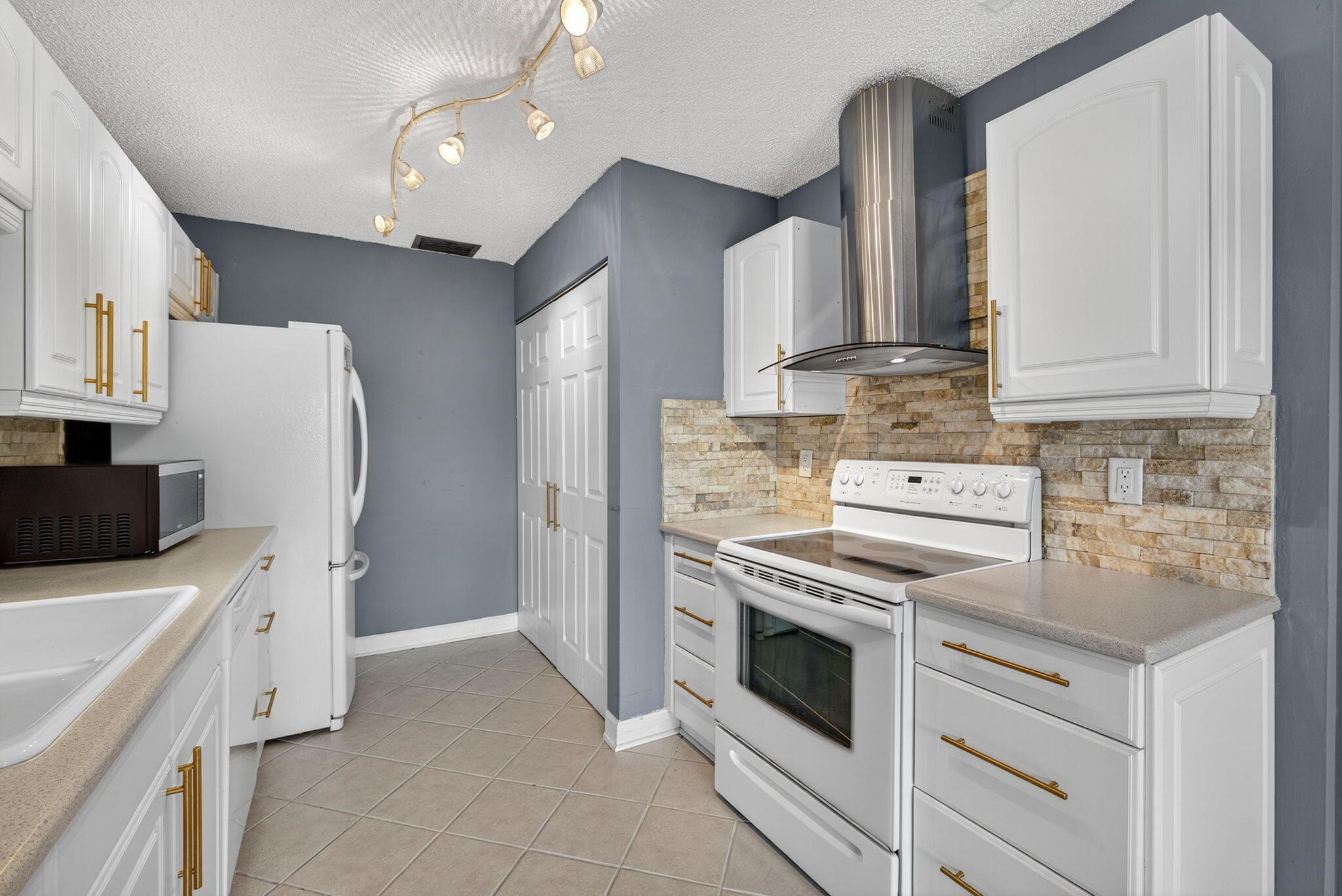 Move in ready 2 bedroom, 2 bathroom, updated villa with 2 screened in patios. Back patio overlooks the lake. The elegantly remodeled kitchen features upgraded white shaker cabinets with gold hardware, white stone backsplash, white appliances, and white tile flooring for a clean, modern look. Large living room and separate dining area with decorative stone wall. The spacious bedrooms include laminate flooring and walk in closets. Both bathrooms are remodeled with white vanities and a stand alone shower in the primary bathroom. Cypress Lakes is a guard gated over 55 community that includes a fitness center, 18 hole golf course and community pool.