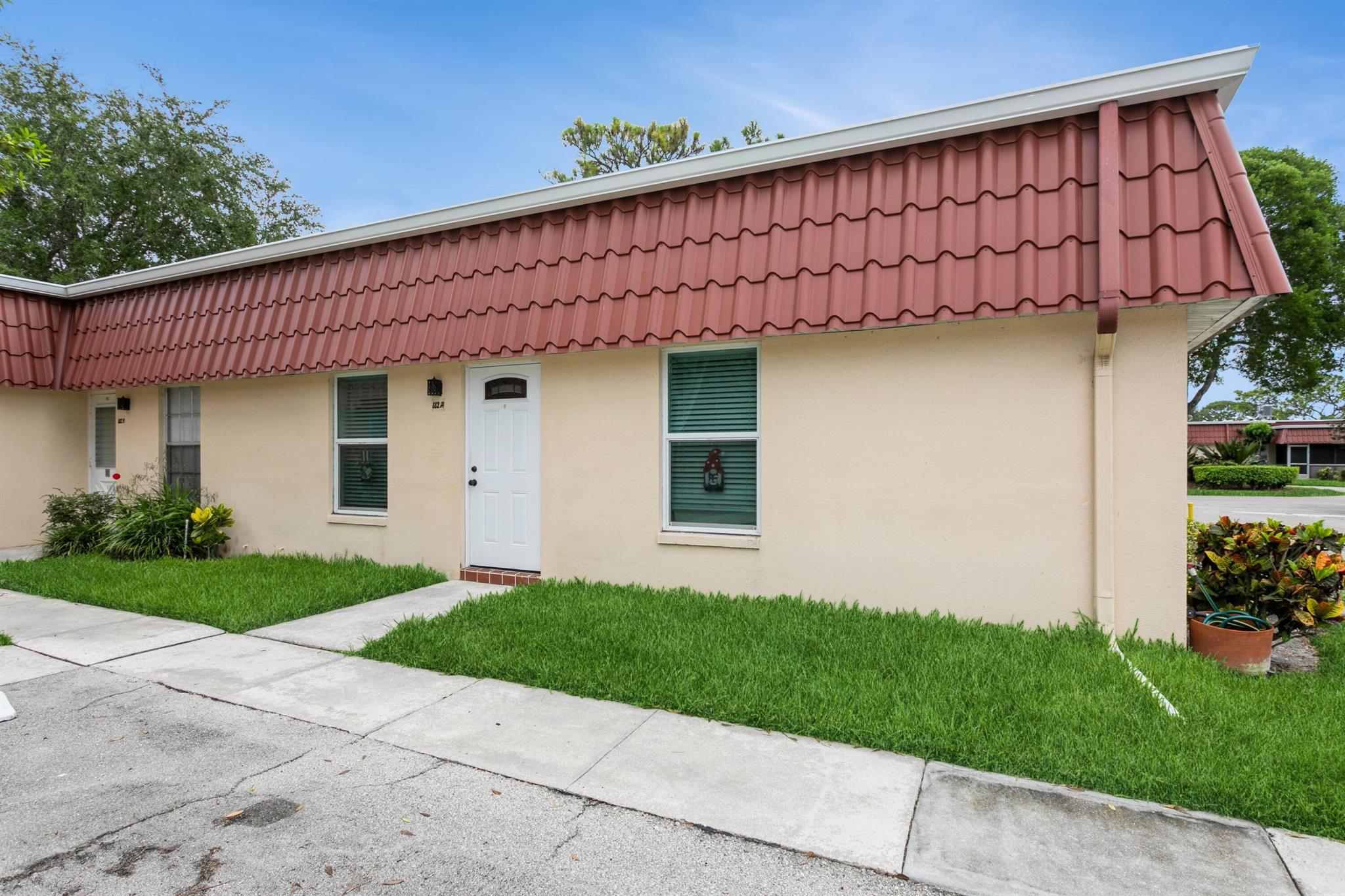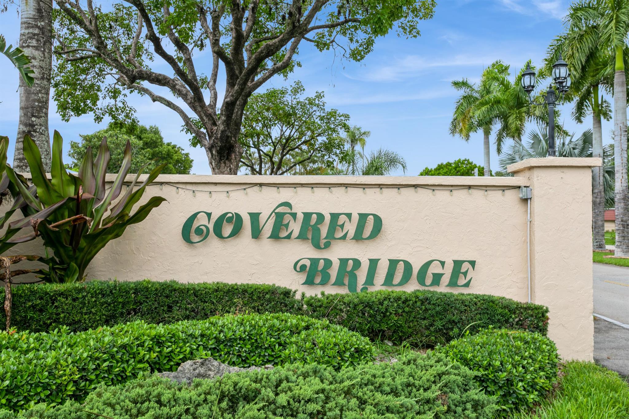 Completely Renovated! This stunning 2-bedroom, 2-bathroom corner unit features an updated kitchen with granite countertops, custom cabinetry, and brand-new stainless steel appliances. Enjoy custom lighting, ceiling fans, and wood plank-tile flooring throughout. Impact-resistant windows are installed throughout, and a three-track sliding glass door opens to a spacious Florida room. New LG stackable washer & dryer inside unit.Both bathrooms have been updated with sleek vanities and contemporary tile finishes. The primary bathroom features a floor-to-ceiling tiled walk-in shower. Located in Covered Bridge, a 55+ community, pet friendly that allows rentals after 12 months of ownership. A short distance away from Okeeheelee Park, shopping, and access to both I-95 & Turnpike.