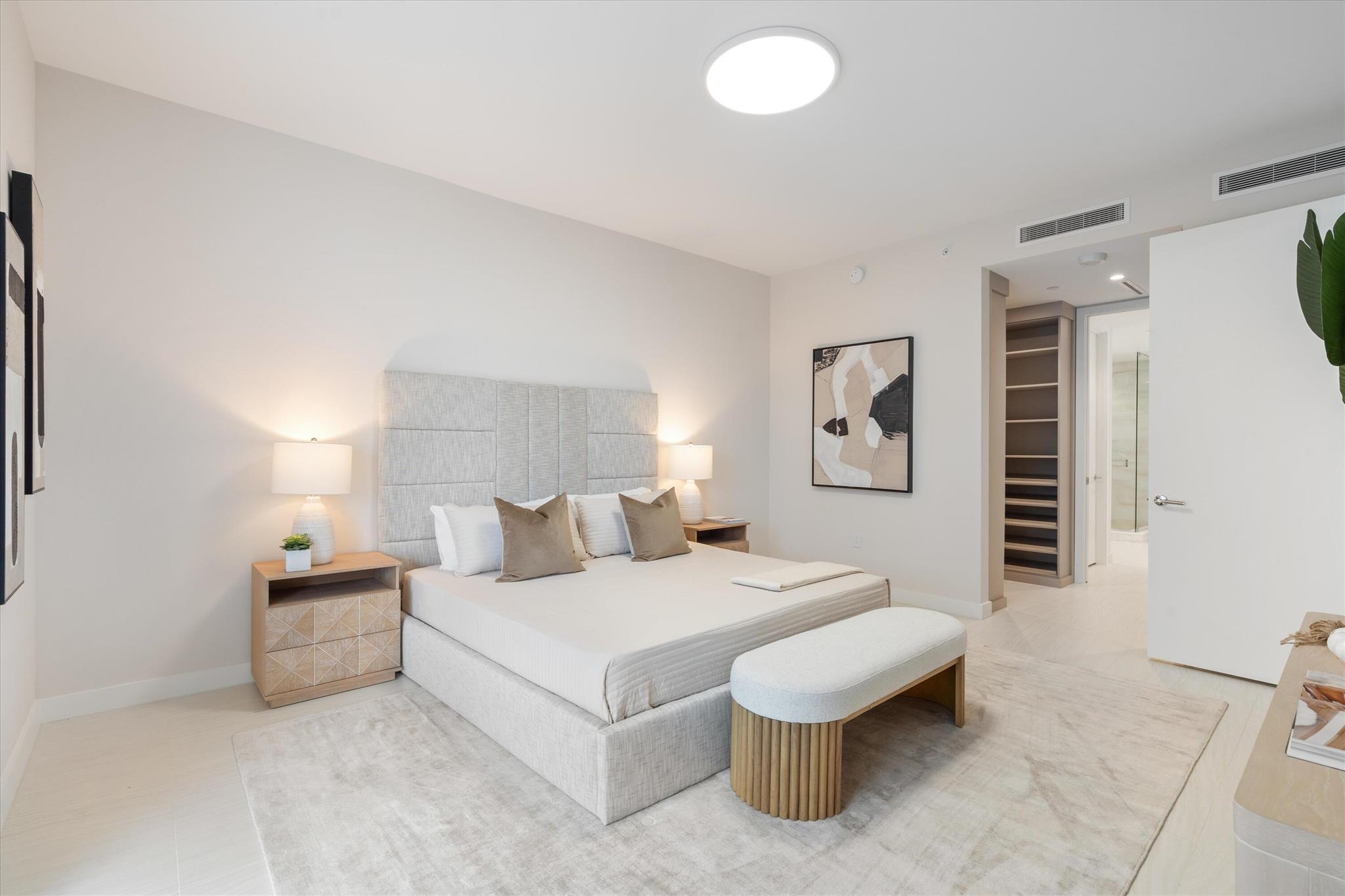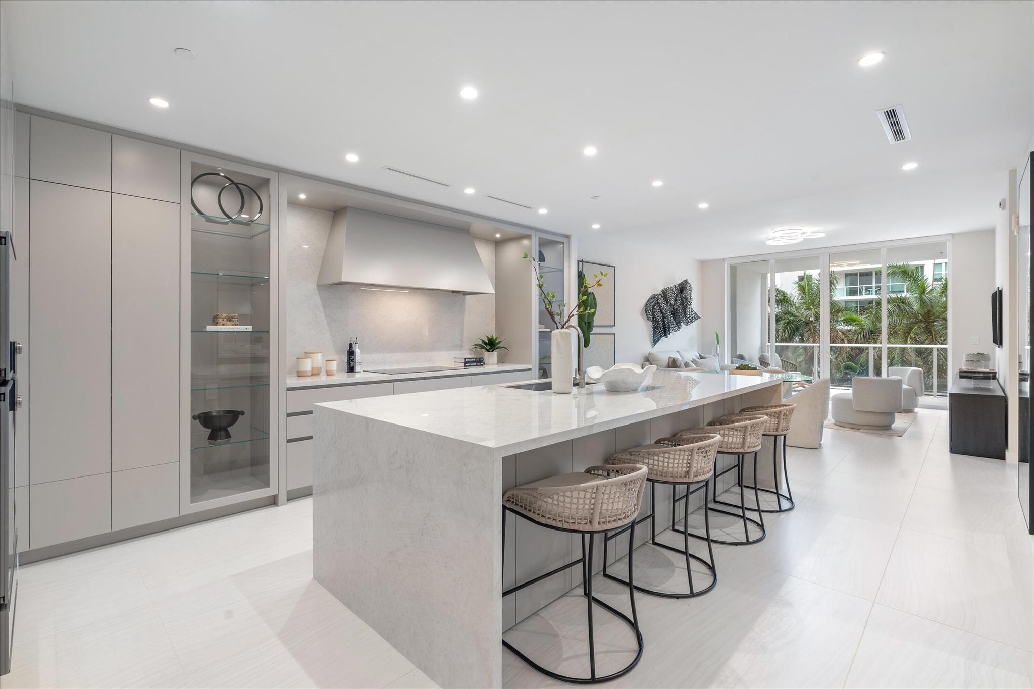 Experience refined living in the heart of downtown Boca Raton at ALINA Residences. This newly completed 4th floor condo, with desirable southeastern exposure, is move-in ready and seamlessly combines modern elegance with everyday comfort. The thoughtfully designed layout includes a spacious primary bedroom, a versatile den, and two full bathrooms--offering both style and functionality. The light-filled, open-concept living space is framed by expansive floor-to-ceiling sliding glass doors that open to a generous south-facing terrace, perfect for relaxing with picturesque golf course views or enjoying al fresco dining. Every detail has been meticulously selected, from motorized custom shades and built-in closets to sophisticated Italian finishes. The chef's kitchen features premium Gaggenau