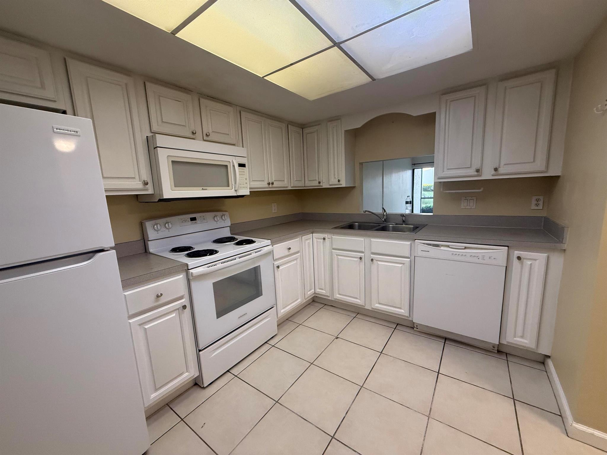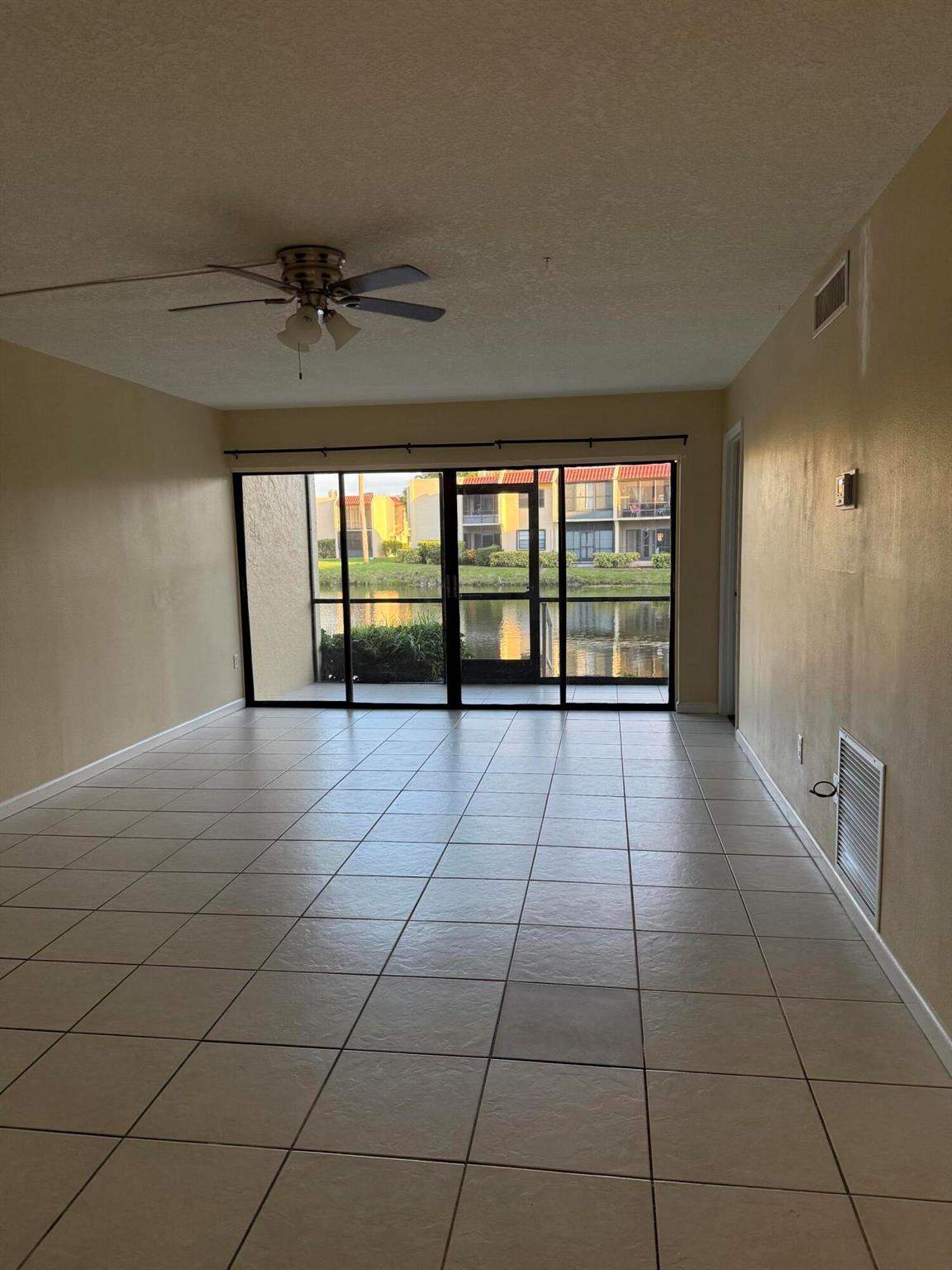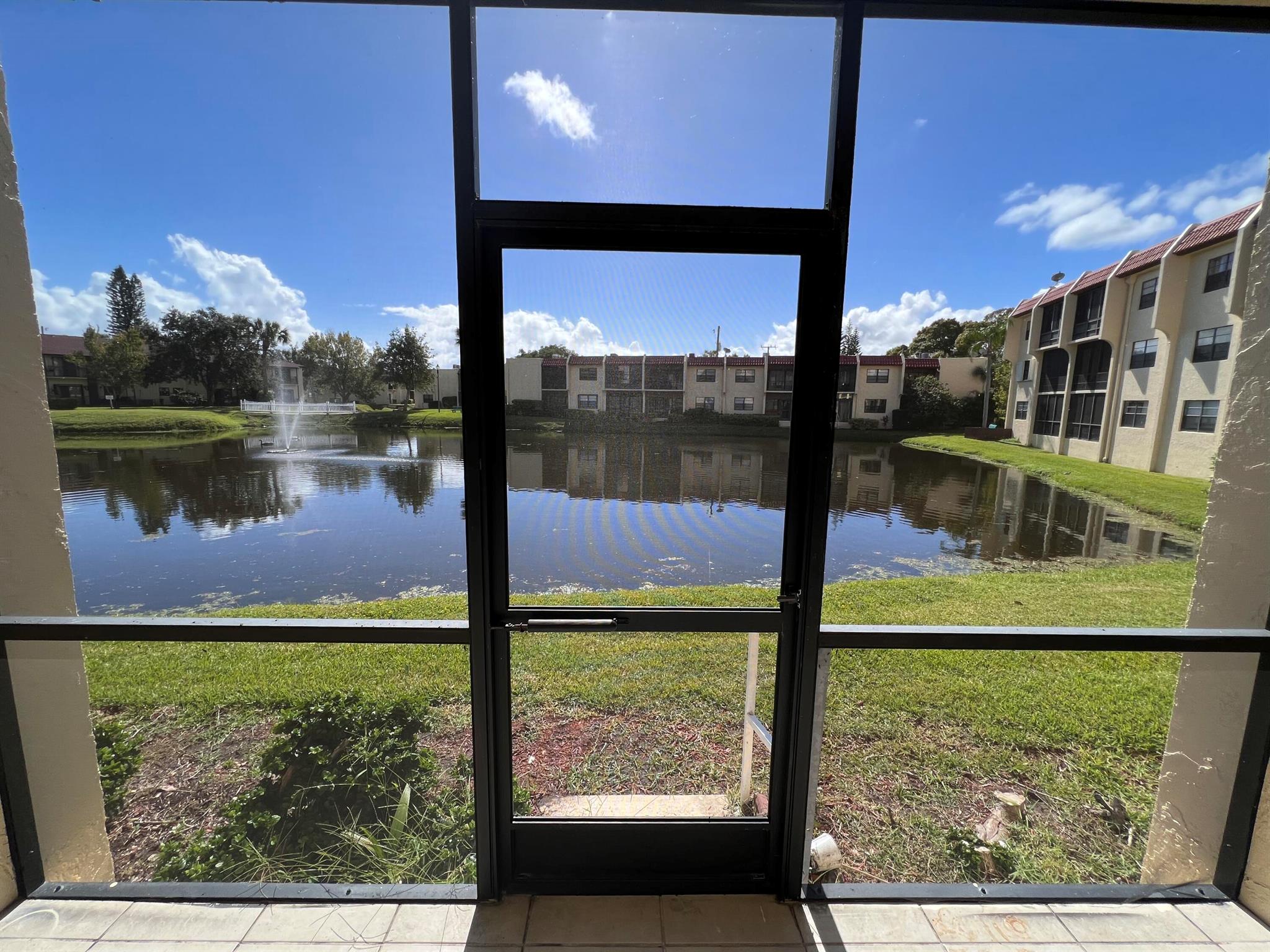 2 bedroom condo with a lake view on the ground floor, walk around the many lakes or to the community pool. Enjoy the breeze in the afternoon in the screened patio with a view of the lake. The building has laundry on each floor. All gated community with plenty of trees and walkways around. Tiled and carpet in the bedrooms. There is a new refrigerator in the unit and ceiling fans in all rooms.