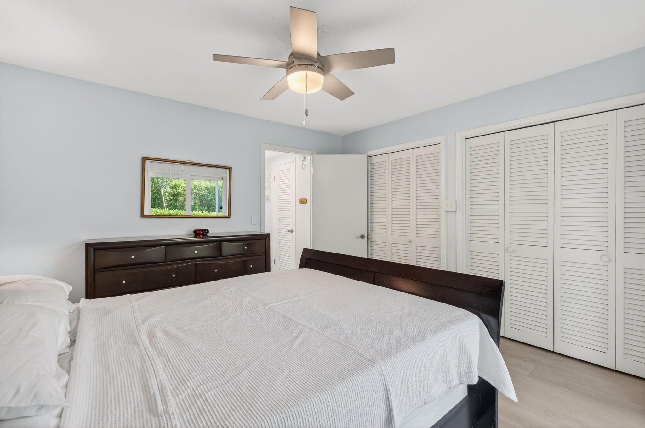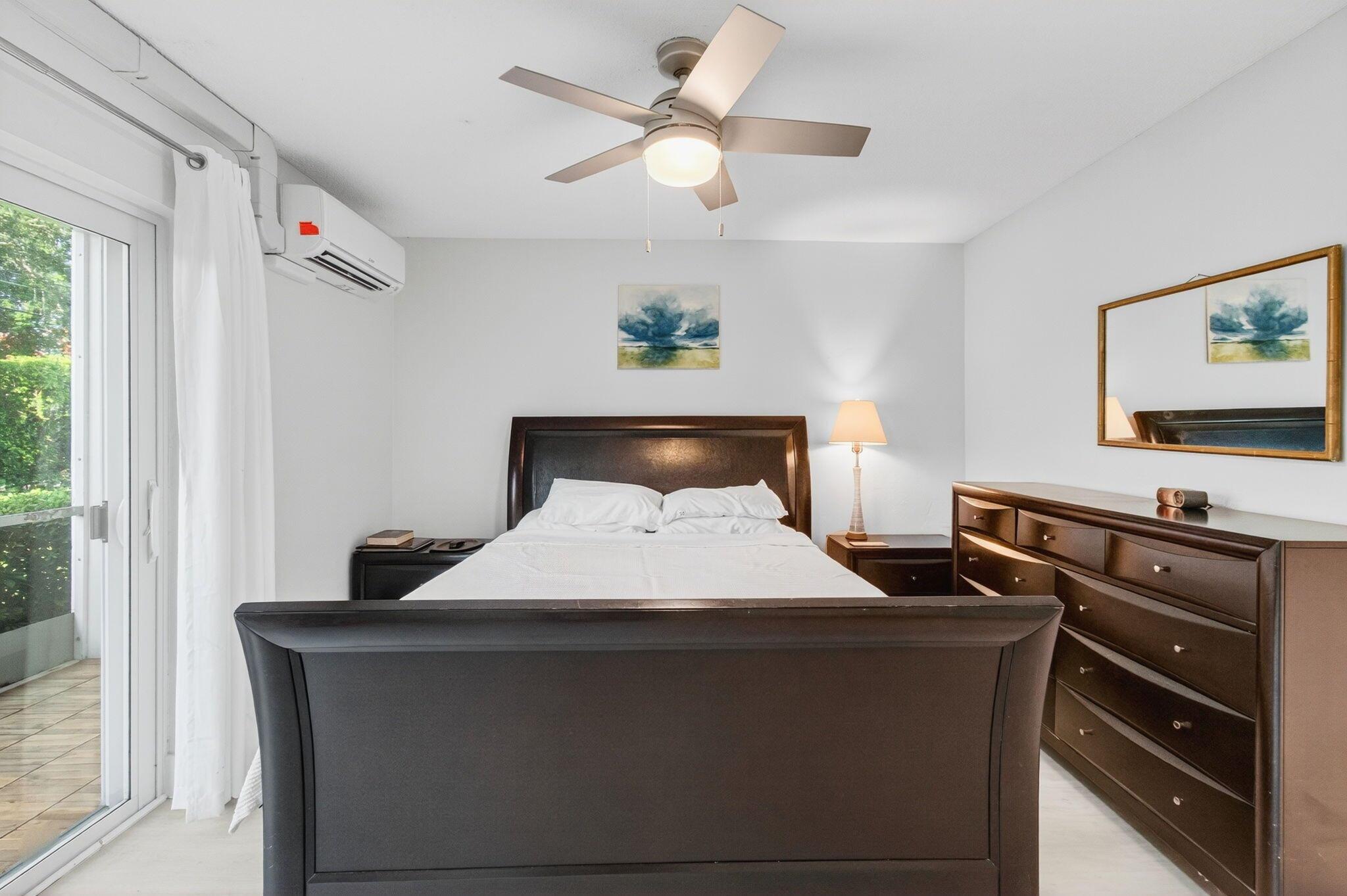 This condo has the most upgrades included for the newly reduced price! Experience everyday beauty in this turnkey, ground-floor condo, available fully furnished or unfurnished. Fully renovated, it boasts luxury vinyl flooring, quartz countertops, soft close drawers and cabinets, and the security of 2022 impact windows and sliding glass doors. The updated bathroom features an age-in-place shower for added convenience. Enjoy a spacious screened patio, perfect for dining and entertaining, with a serene garden view and a short stroll to the Intracoastal Waterway. Stay comfortable with two efficient 2023 Mitsubishi A/C units. Sterling Village offers a newly renovated clubhouse, a secure gated entrance, a pool, putting green, bocce, and pickleball courts, and diverse recreational areas.