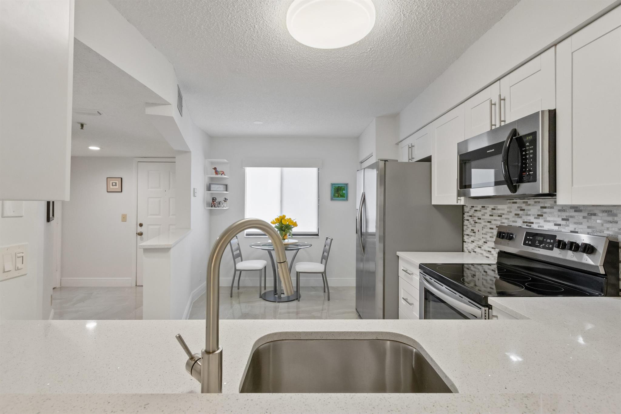 WOW! CORNER UNIT! UPDATED highly sought after Lancaster model in the ONLY section of Huntington Lakes w/ a satellite clubhouse. No carpeting! Stunning tile flooring throughout! Renovated eat-in kitchen w/ s/s appliances, soft close cabinets & quartz countertops. Enclosed balcony features windows that open & close allowing you to use this space ALL year long! Completely renovated bathrooms w/ large sized showers & beautiful tile work. Large primary suite with room for sitting area, two walk-in closets & access to covered balcony. Second bedroom is connected to guest bath for privacy. Utility closet inside the unit w/ washer/dryer & storage. Storage unit included. Special Assessment is PAID! Huntington Lakes RENOVATED clubhouse is a MUST SEE! Indoor pool