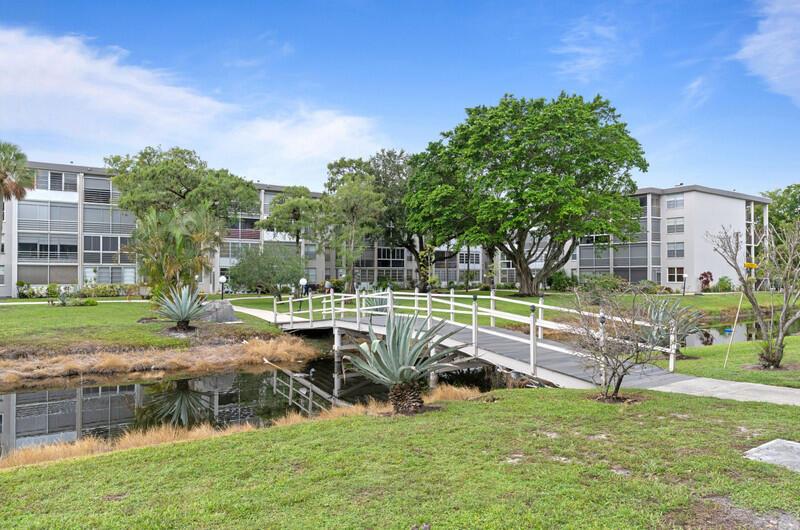 Discover this pristine, move-in ready 2/2 situated on the fourth floor of the highly desirable 55+ community of Cypress Chase -- offering peace of mind with no neighbors above and the most serene balcony view in the neighborhood. Gaze out over lush gardens, a sparkling pool, a peaceful canal, and a charming bridge from your private balcony, with sliding glass doors that fill the space with natural light.Inside, you'll find a spacious, bright layout featuring a generous dining and living area that is perfect for both relaxing and entertaining. The simple yet beautiful kitchen shines with white cabinetry, matching white appliances, a custom white backsplash, and rich, dark brown countertops that add a touch of warmth and sophistication. The master includes an en suite bathroom and...