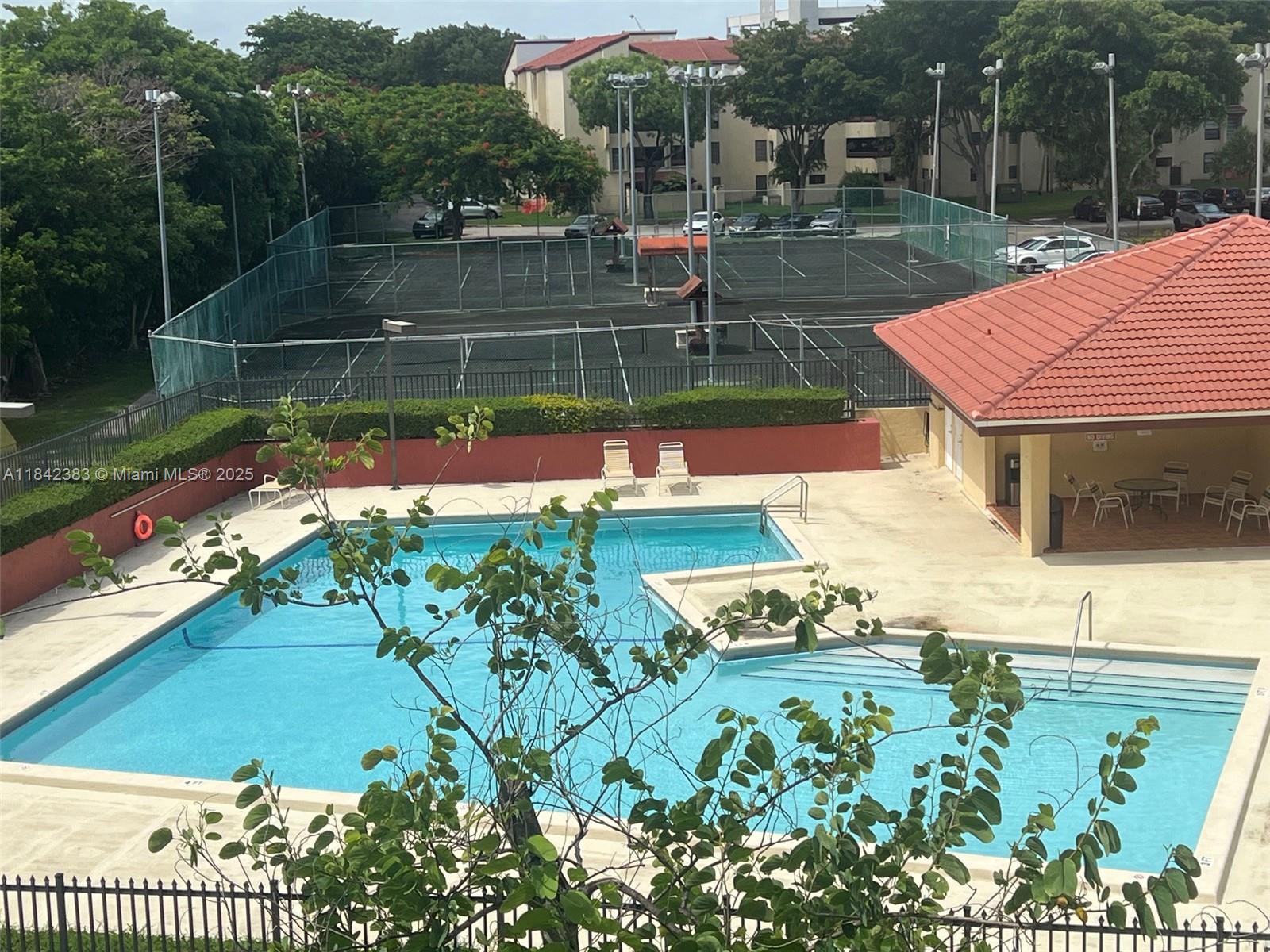 Welcome to this spacious 2-bedroom, 2-bath condo located on the 4th floor of the highly sought-after Kenland Bend South community. This bright &airy unit features a large private balcony, perfect for relaxing or entertaining, & is equipped with accordion hurricane shutters for peace of mind. Enjoy the convenience of in-unit laundry, generous walk-in closets, & additional private storage. The layout offers comfortable living with ample natural light. Community amenities include a clubhouse, sparkling pool, & elevator access. You'll love the ample parking & unbeatable location just minutes from top-rated schools, shopping centers, restaurants, movie theaters, public transportation, & with direct access to the Turnpike Expressway. The seller does not accept blind offers or escalation clauses.