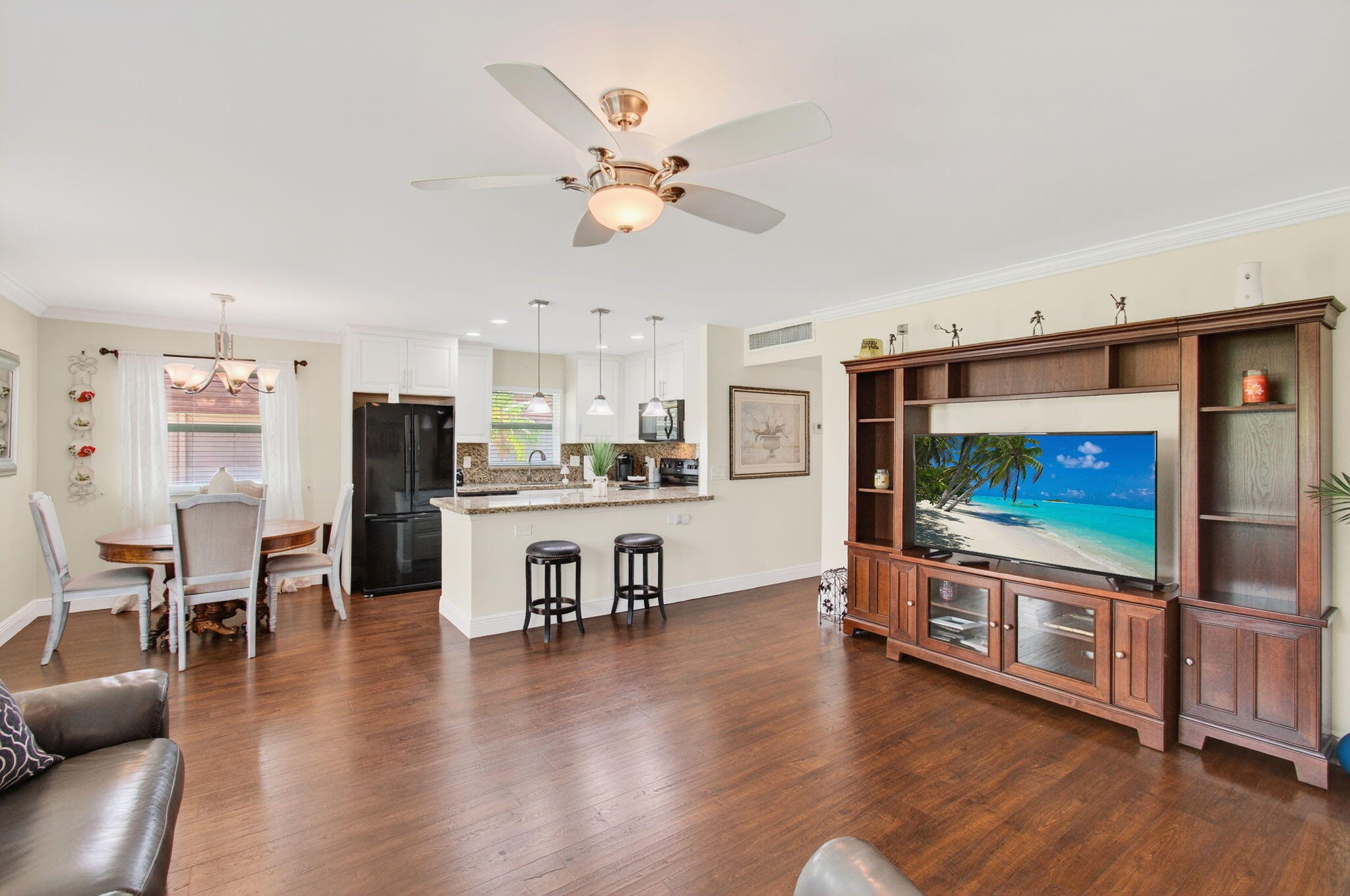 55yrs+ Active Adult Community. Welcome to this beautifully renovated 2BD/2BA villa in the Seville section of Kings Point, Delray Beach! Features include hurricane-impact windows, slider and doors, newer A/C (2022), tankless water heater (2016), vinyl flooring (no carpet or popcorn ceilings), recessed LED lighting, and an open kitchen with granite countertops and soft-close cabinets. Washer/dryer tucked behind folding doors in the newly renovated Florida room, with storm proof windows and separate wall AC unit. Close to the main clubhouse and all amenities--pickleball, tennis, pools, fitness center, theater, cafe, and so much more. Just minutes to Atlantic Ave, downtown Delray, and the beach. Perfect winter getaway with manned gate for added security!
