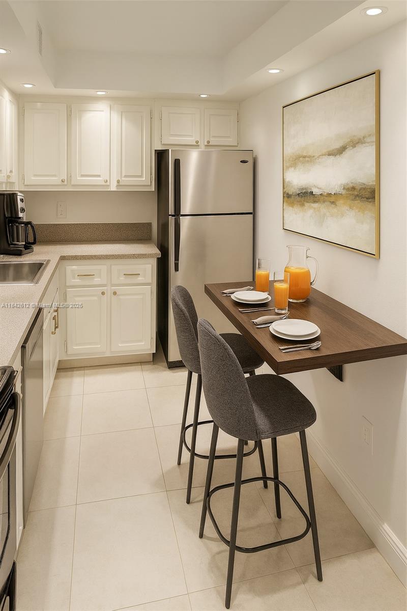 LARGE 1 BED 1.5 BATHS / Modern Recessed Lighting system throughout the apartment. Huge Master Bedroom with space for 1 Queen Bed + Twin Bed. Private bathroom + Half bath for visitors. Ample walking closet. Balcony overlooking the tree-lined Sans Souci Blvd. Open kitchen, stainless steel appliances (refrigerator, glass top electric range, dishwasher). New A/C recently installed. LOCATION, LOCATION, LOCATION: Just 2 blocks from the commercial epicenter of North Miami: LA Fitness, Whole Foods, Starbucks, Panera, Dennys, Burger King, Walgreens, Office Max, Ross, Five Below, TJ Max. Easy access to I-95. Just 7 min to Surfside Beach