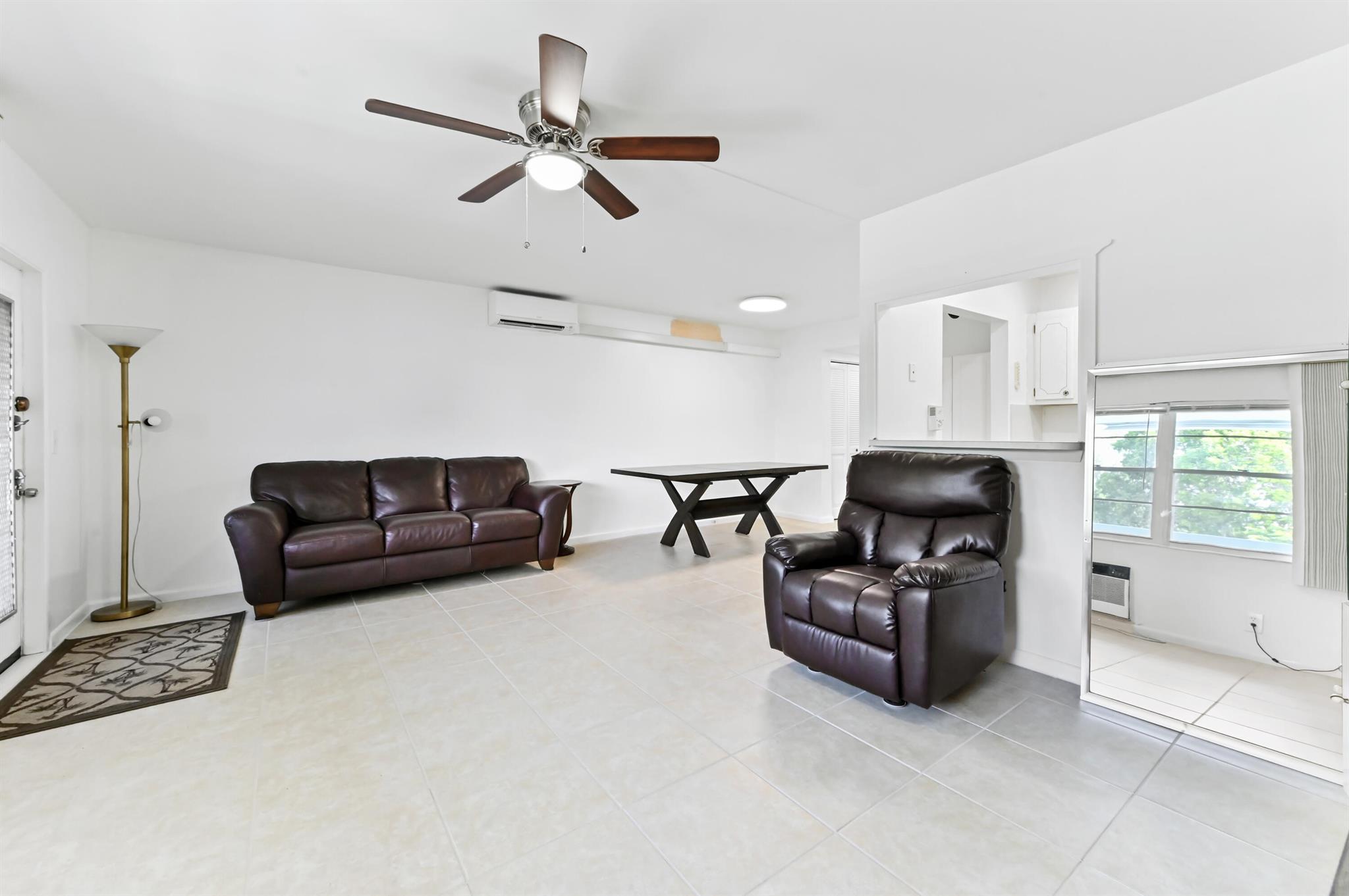 Prime Deerfield Beach Location! Discover this beautifully updated 1-bedroom, 1.5-bath condo featuring a new split A/C system in both the living room and bedroom, new electrical panel, new hot water heater, and new building roof (2024), this home is move-in ready. The kitchen shines with a new stove, white appliances, flood lighting, and no popcorn ceilings. Enjoy large ceramic tile flooring throughout and new mini-blinds. The private patio, complete with extra storage, overlooks a serene garden view. Located in the heart of Century Village East, an active adult community. Just steps from the heated outdoor pool and walking distance to a shopping plaza, this top-floor unit offers convenience and comfort.