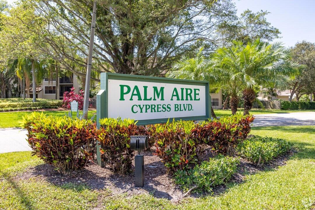 Generous Price Reduction to sell fast. Gorgeous & Upgraded 1 bedroom condo located in the sought-after PalmAire community. This light-filled unit offers a blend of comfort, style, convenience, and an open layout- with elegant finishes, including quartz countertops, ALL NEW light fixtures, modern cabinetry, stainless steel appliances, and neutral porcelain tile fl throughout. Enjoy peaceful mornings or sunset evenings on your private screened balcony overlooking the lush greenery of the golf course. The spacious bedroom features generous closet space, and the upgraded bathroom adds a touch of contemporary charm. Ideally located just minutes from the beach, shopping, dining, and major highways- this is South Florida living at its best! Perfect as a year-round residence or vacation getaway.