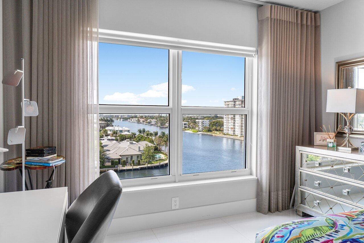 Prepare to say WOW. Stunning waterfront views from this remodeled 2 bedroom, 2 bath condo directly on the Intracoastal. Features gorgeous porcelain floors throughout, impact windows, remodeled kitchen with an island and wine fridge, new refrigerator, new stove and new washer dryer inside the unit. Primary bedroom has incredible views, large walk in closet and primary bath has dual sinks plus a separate makeup area. Two huge balconies with north and south facing views up and down the waterway. Building recently completed major enhancements, including a concrete restoration project and a seawall upgrade. Milestone and SIRS complete! NO ASSESSMENTS! First-come-first-serve boat slip dockage accommodating vessels up to 50 feet, along with a storage space & bicycle storage. Over 55 Bldg.