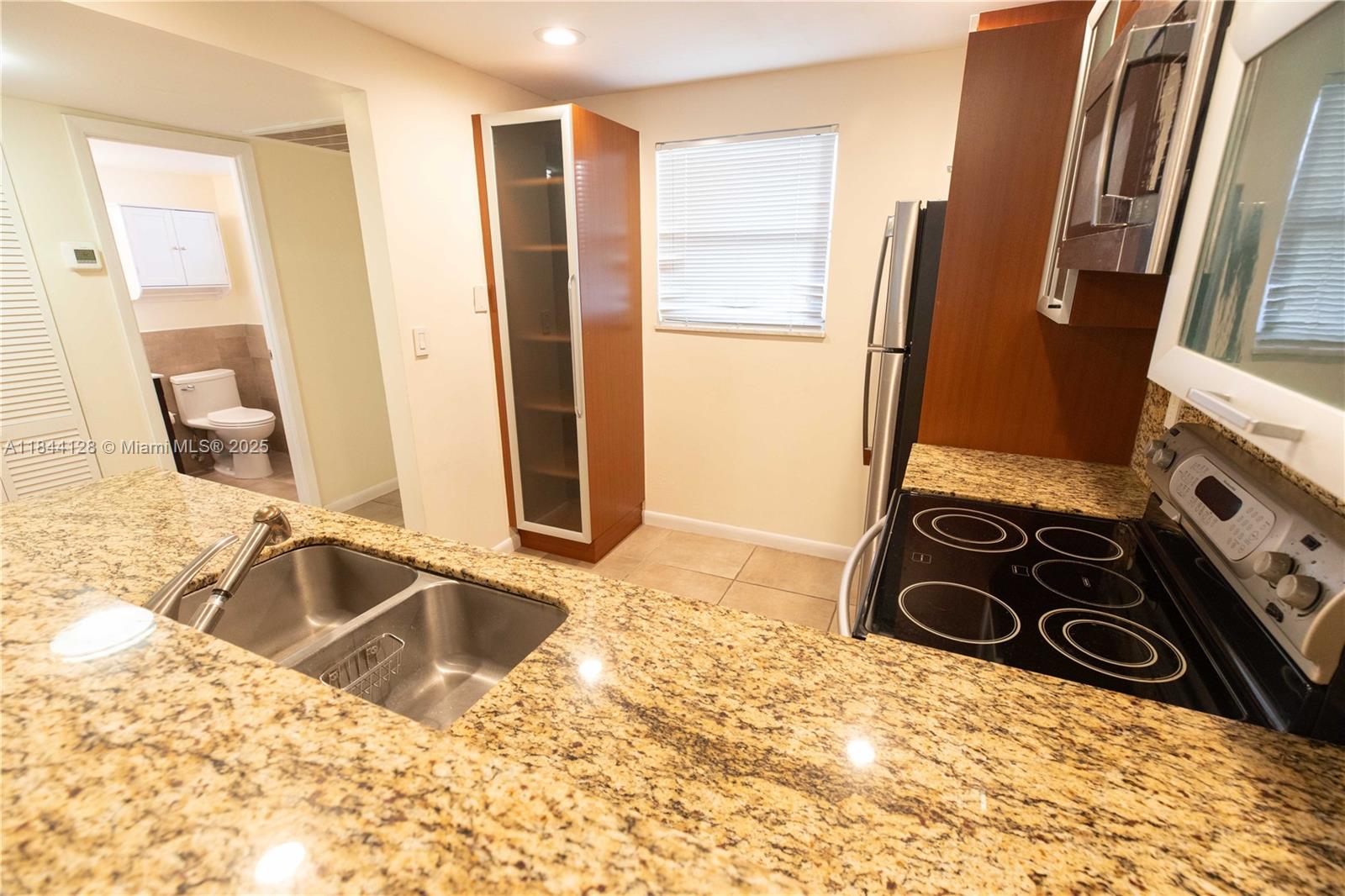 Live in a prime location in a relaxing, bright and airy condo. Spacious one bedroom with one and one half bath. Open floor plan with an updated kitchen, granite countertops and SS appliances. Unit has tile floors throughout, two updated baths, primary bathroom with a walk-in shower, bedroom has two spacious closets. Enjoy the open balcony and (1) one assigned parking space. The building has several laundry facilities, beautiful gardens, BBQ area and pool overlooking the canal, boats and beautiful homes. Steps away from the water and parks. Close to restaurants and entertainment in the Gables and Coconut Grove. Easy to show.