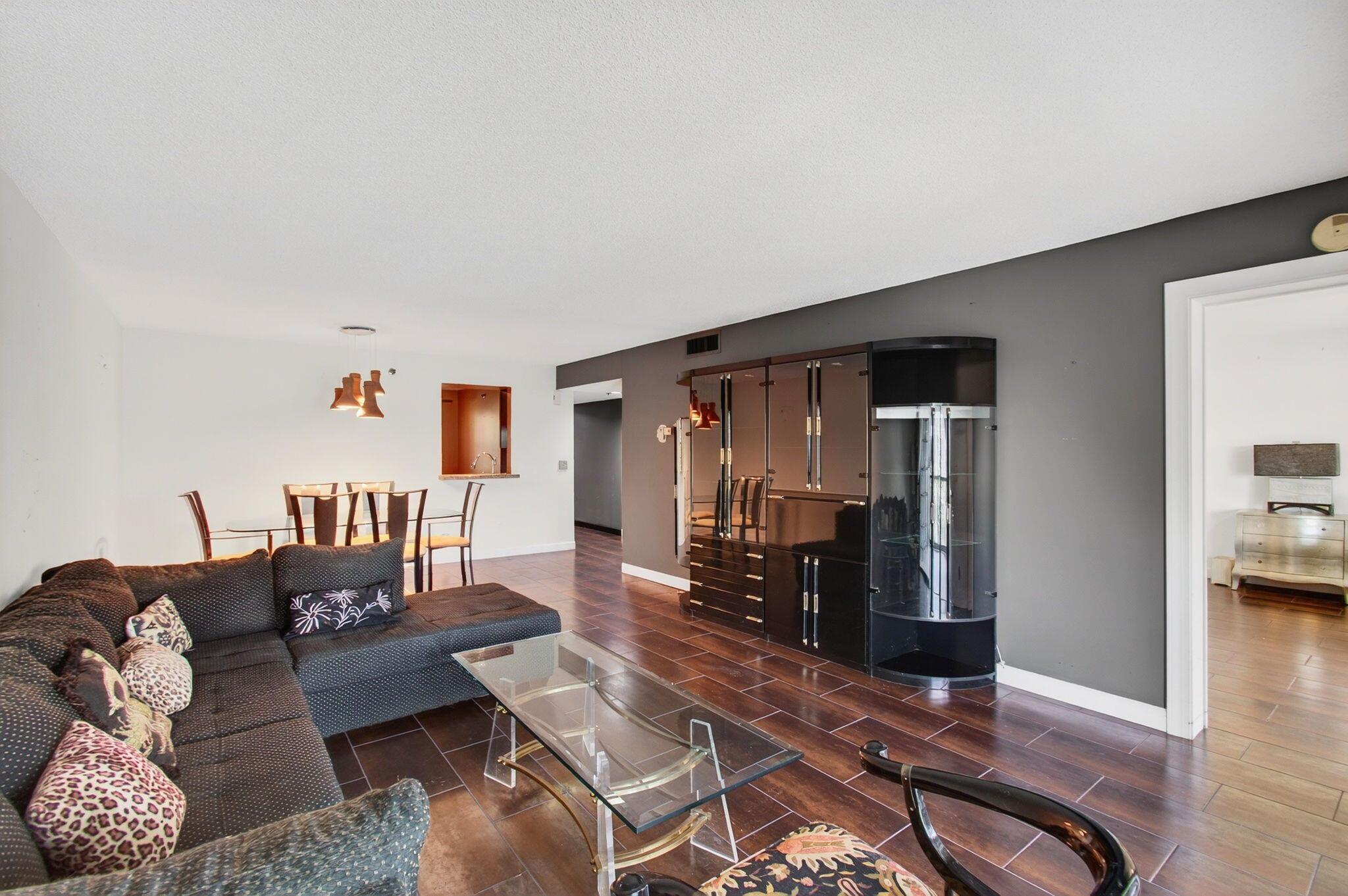 HUNTINGTON LAKES--ACTIVE ADULT COMMUNITY, 55+ community. Introducing the highly sought-after residence at 7290 Kinghurst Drive, Unit 405, located in Section 5 of the vibrant and prestigious Adult Community of Huntington Lakes. Elevated on the fourth floor, this remarkable property boasts a peaceful lakeside setting, offering serene views that feel like a personal retreat.An inviting promise of warmth reverberates throughout the unit, amplified by pleasing wood floors. The accommodation is tied together with a meticulously planned layout that emphasizes comfort and privacy, with subtly partitioned bedrooms.