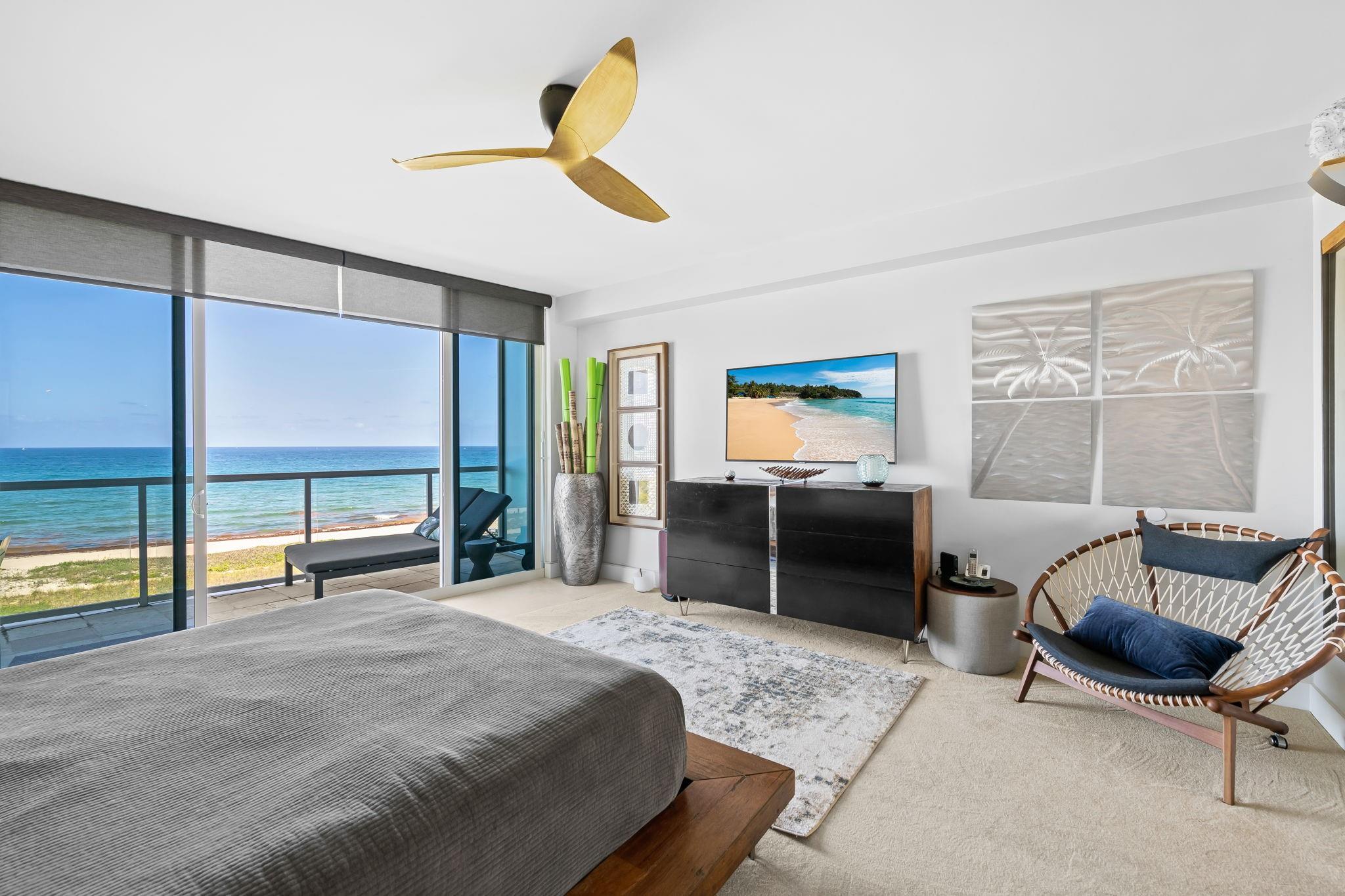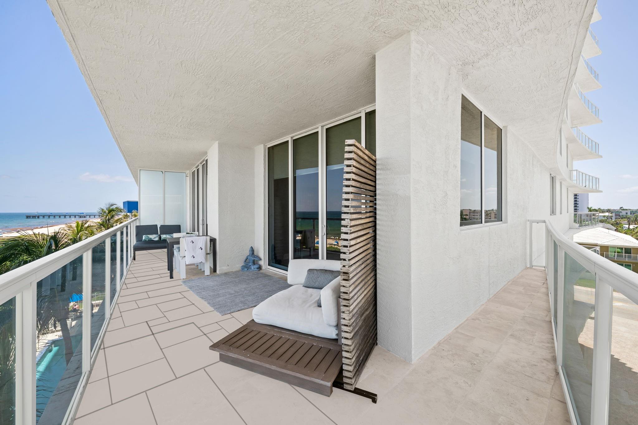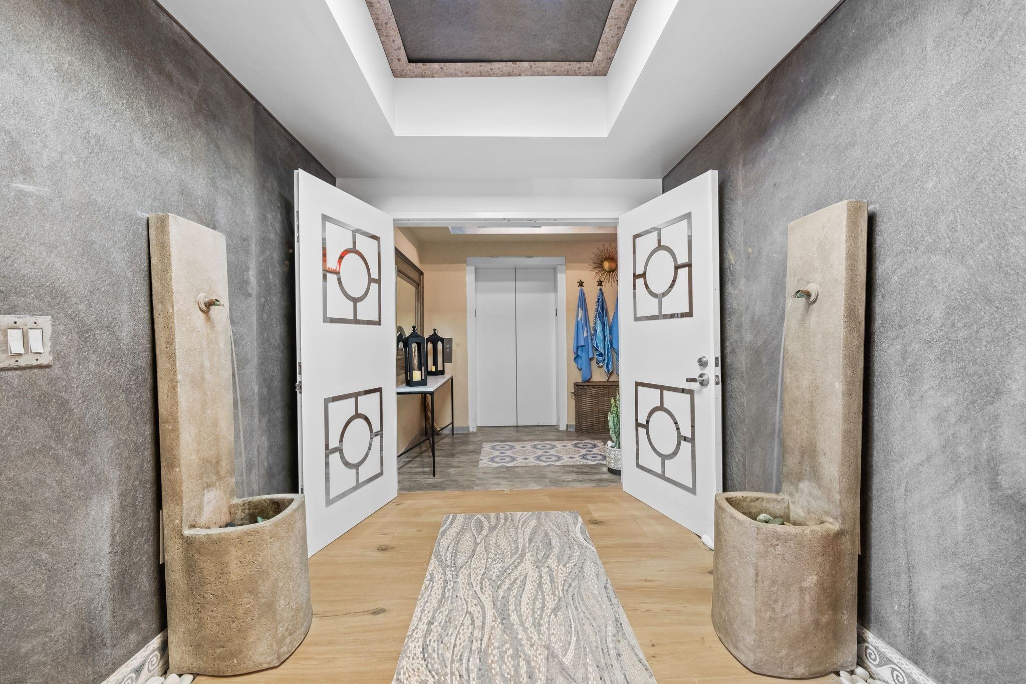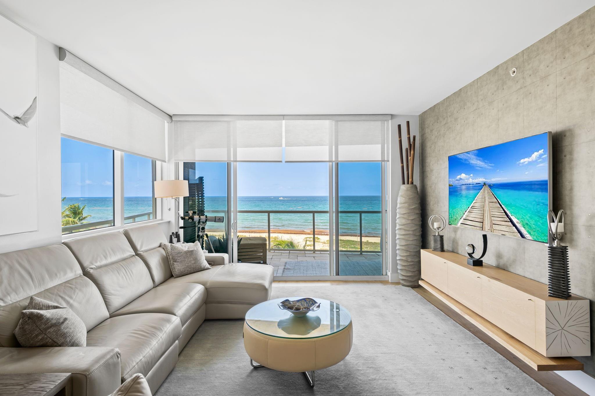 Unique private boutique oceanfront 32 unit Condominium. Quiet and highly secure building offering valet services, gym, pool, jacuzzi. This residence is a rare find with private elevator into your private foyer. This designer 2600 sq ft 3 bedroom 2.5 bath corner unit is situated on the Atlantic Ocean with expansive balconies offering a spectacular direct ocean and city views. Split floor plan with 2 master bedrooms the 3rd a designated office. Spa like feel with many designer touches including private foyer with fountains upon entering, soaking bathtub with ocean views, Viking stove and high end appliance package, remote window treatments, whole condo water filtration system. Location, location, location! Walking distance to oceanfront restaurants, pier and more!