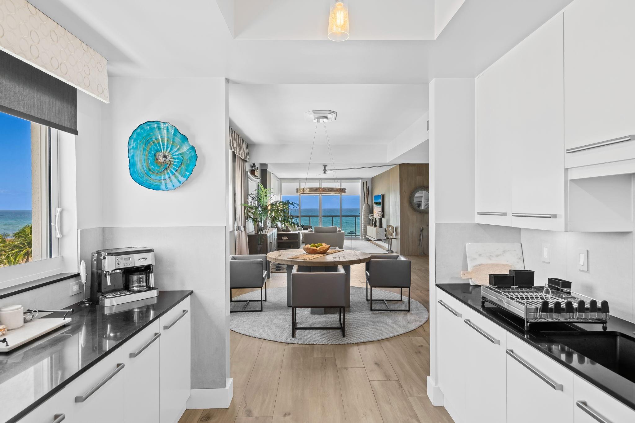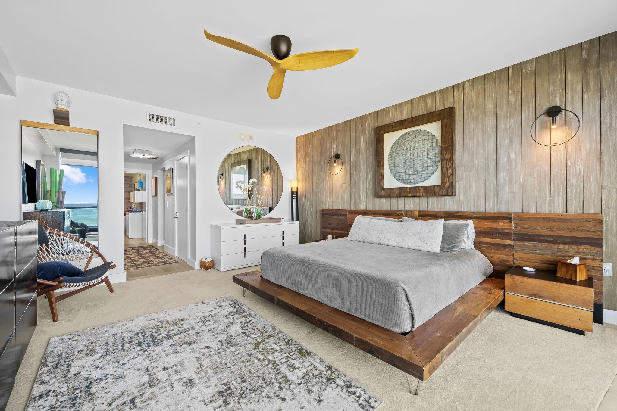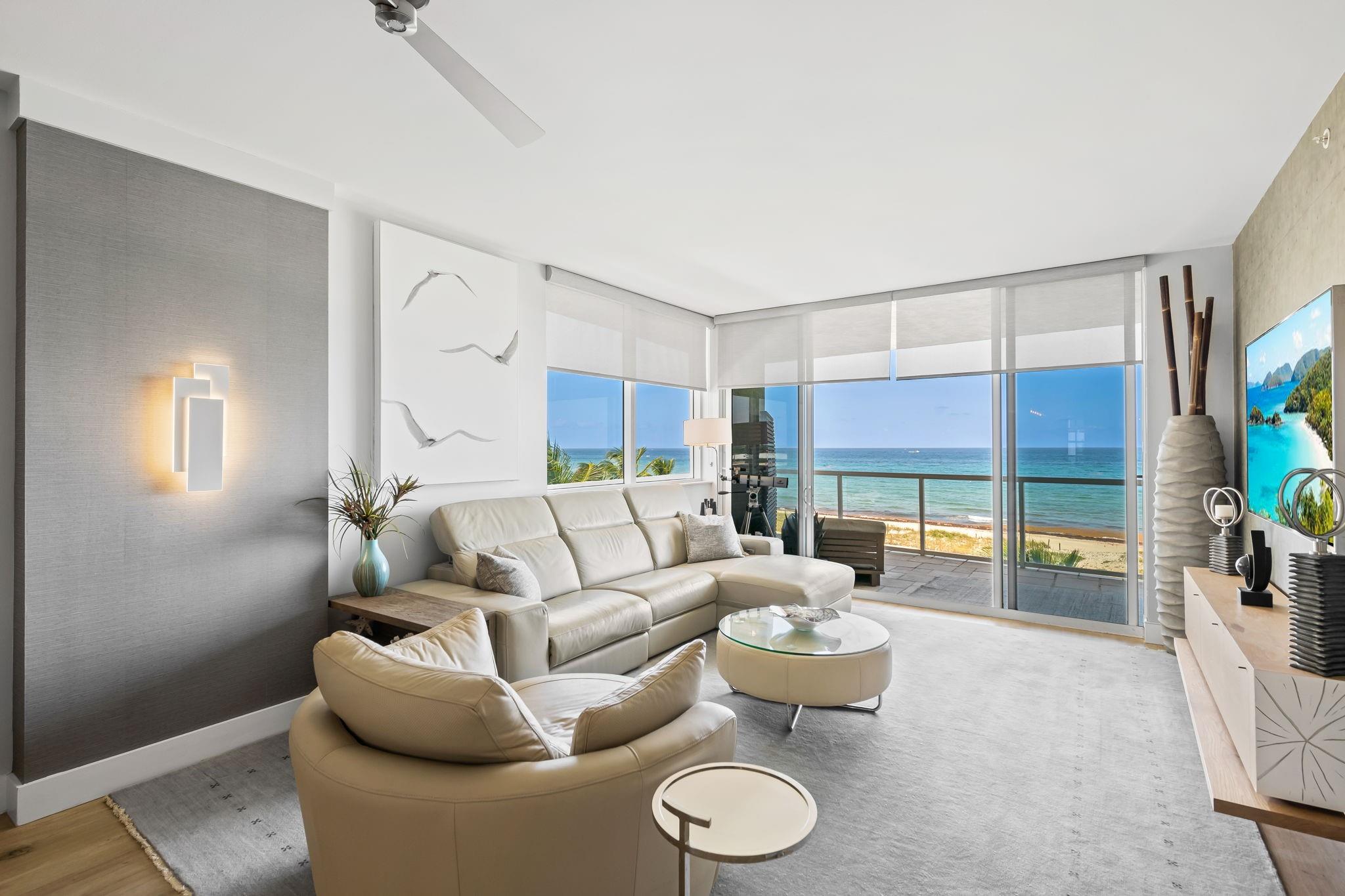 Unique private boutique oceanfront 32 unit Condominium. Quiet and highly secure building offering valet services, gym, pool, jacuzzi. This residence is a rare find with private elevator into your private foyer. This designer 2600 sq ft 3 bedroom 2.5 bath corner unit is situated on the Atlantic Ocean with expansive balconies offering a spectacular direct ocean and city views. Split floor plan with 2 master bedrooms the 3rd a designated office. Spa like feel with many designer touches including private foyer with fountains upon entering, soaking bathtub with ocean views, Viking stove and high end appliance package, remote window treatments, whole condo water filtration system. Location, location, location! Walking distance to oceanfront restaurants, pier and more!