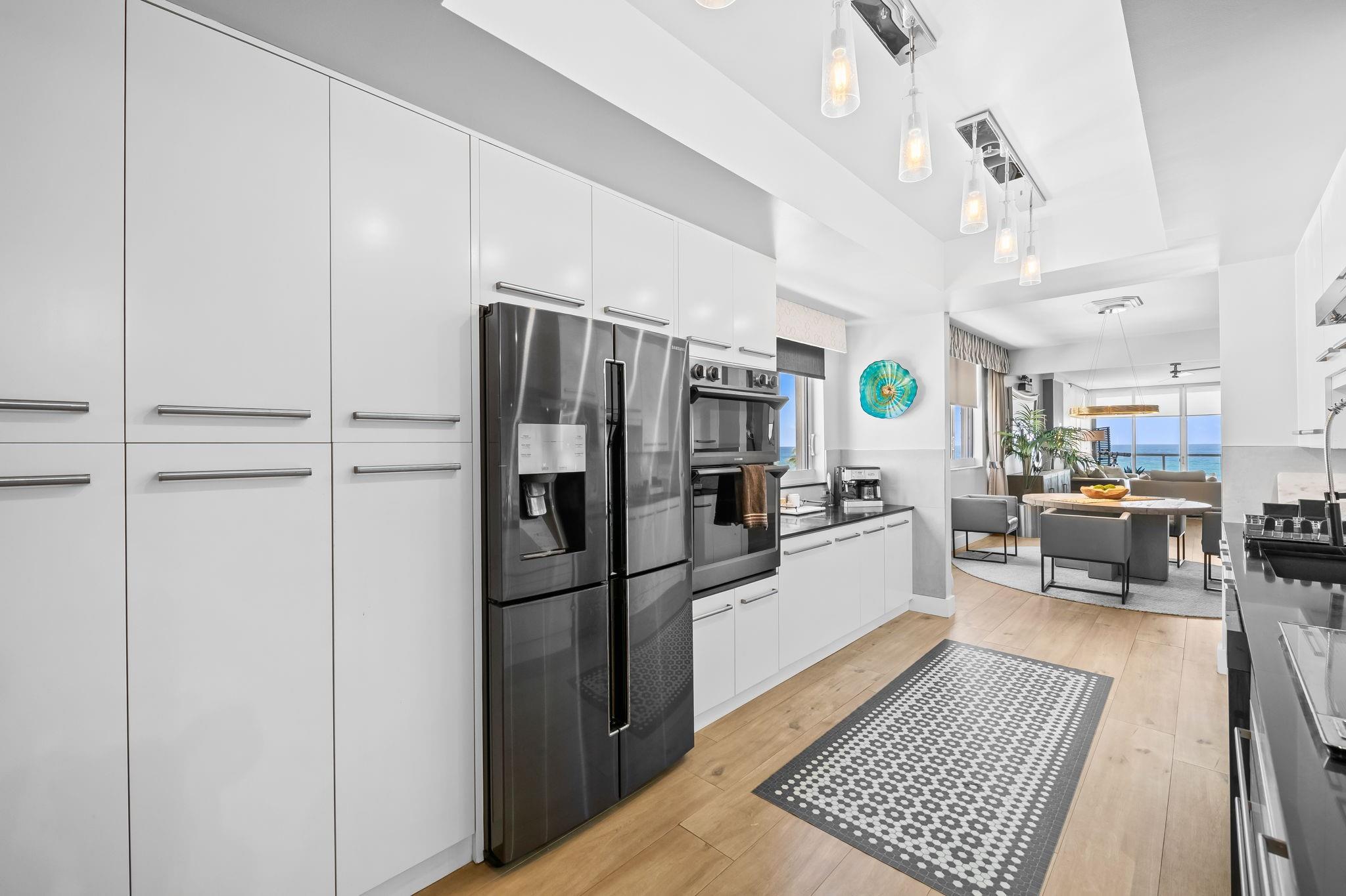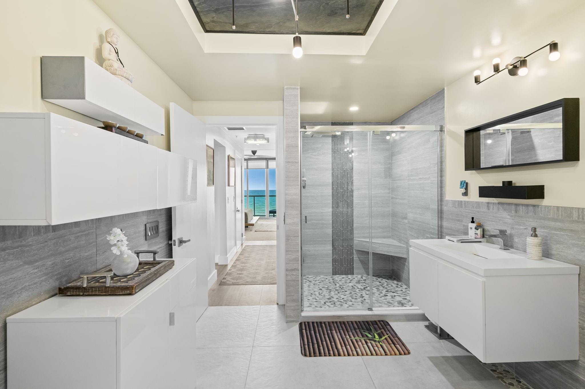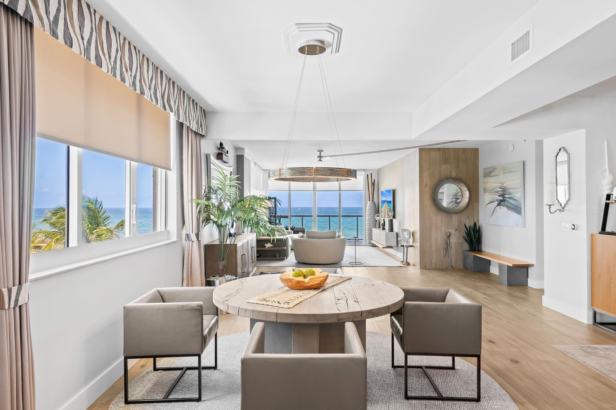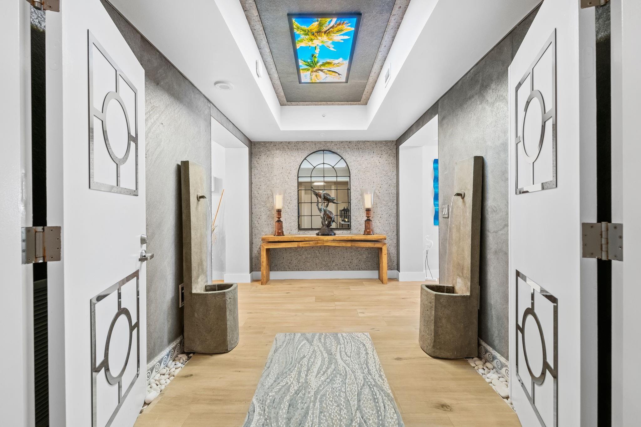 Unique private boutique oceanfront 32 unit Condominium. Quiet and highly secure building offering valet services, gym, pool, jacuzzi. This residence is a rare find with private elevator into your private foyer. This designer 2600 sq ft 3 bedroom 2.5 bath corner unit is situated on the Atlantic Ocean with expansive balconies offering a spectacular direct ocean and city views. Split floor plan with 2 master bedrooms the 3rd a designated office. Spa like feel with many designer touches including private foyer with fountains upon entering, soaking bathtub with ocean views, Viking stove and high end appliance package, remote window treatments, whole condo water filtration system. Location, location, location! Walking distance to oceanfront restaurants, pier and more!