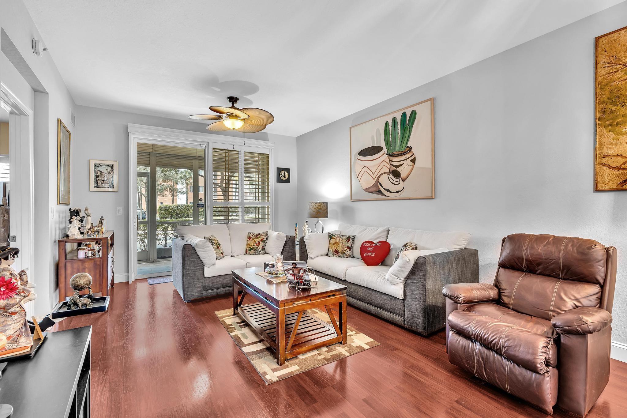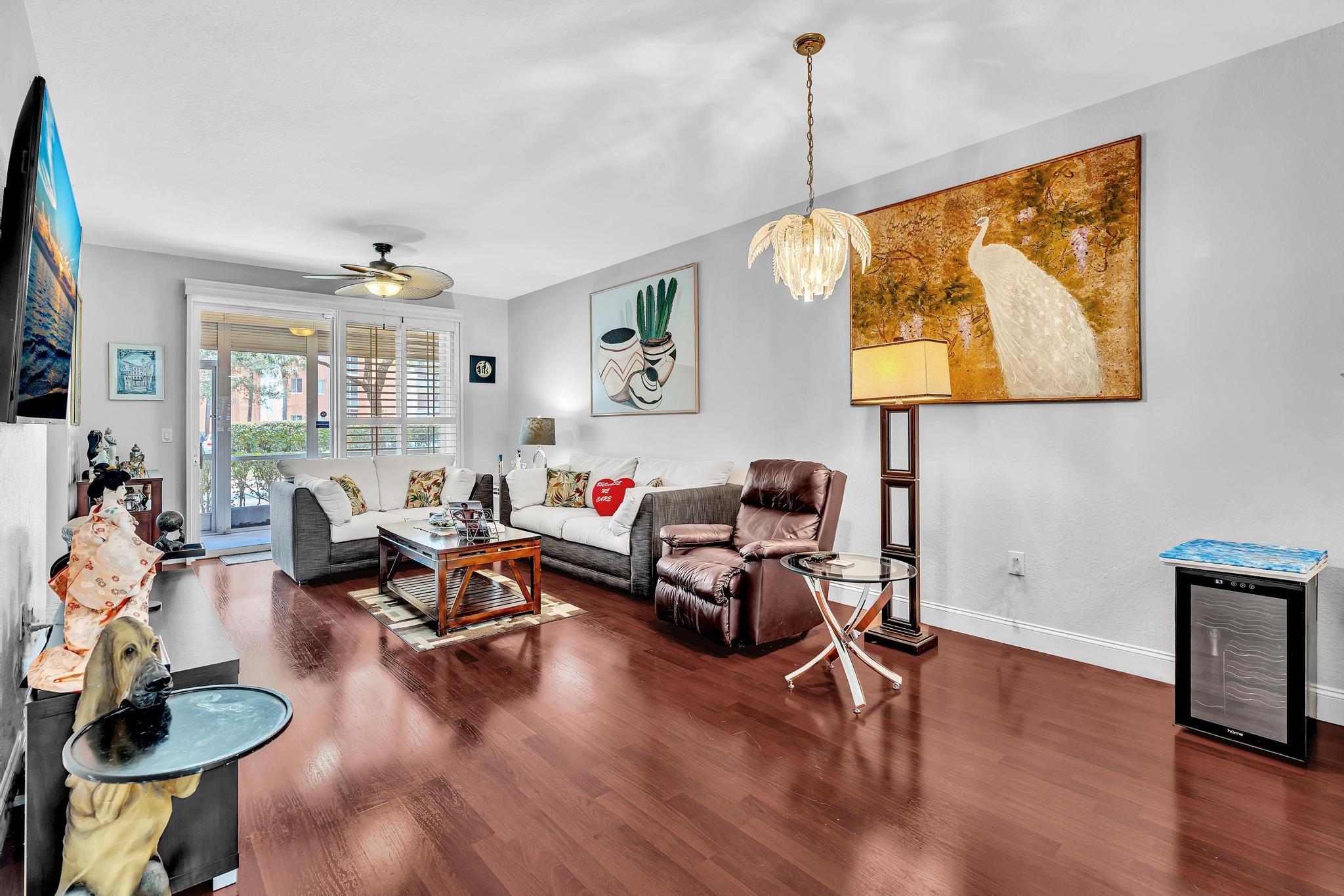 *First Floor*Spectacular 2-bed,2-bath condo located in desirable Yardley at Kings Point! This unique home has hardly been lived in. Step through the screened patio that greets you before reaching your front door, & Enjoy your 2nd screened patio, which is excellent for relaxing. Gorgeous open white kit. Cabinets overlooking the living/dining room. New top-of-the-line stainless steel appliances. Stunning wood flooring throughout the entire home. Magnificent open layouts. A Lovely split floor plan. Light & bright. Immaculate condition. The master suite offers spacious walk-in closets. Hurricane impact windows & sliding doors. Fantastic gated community with great amenities, including an indoor & outdoor Pool, Sauna, Clubhouse, Theater, Billiard Room, Free transportation buses, Gym, art & more.