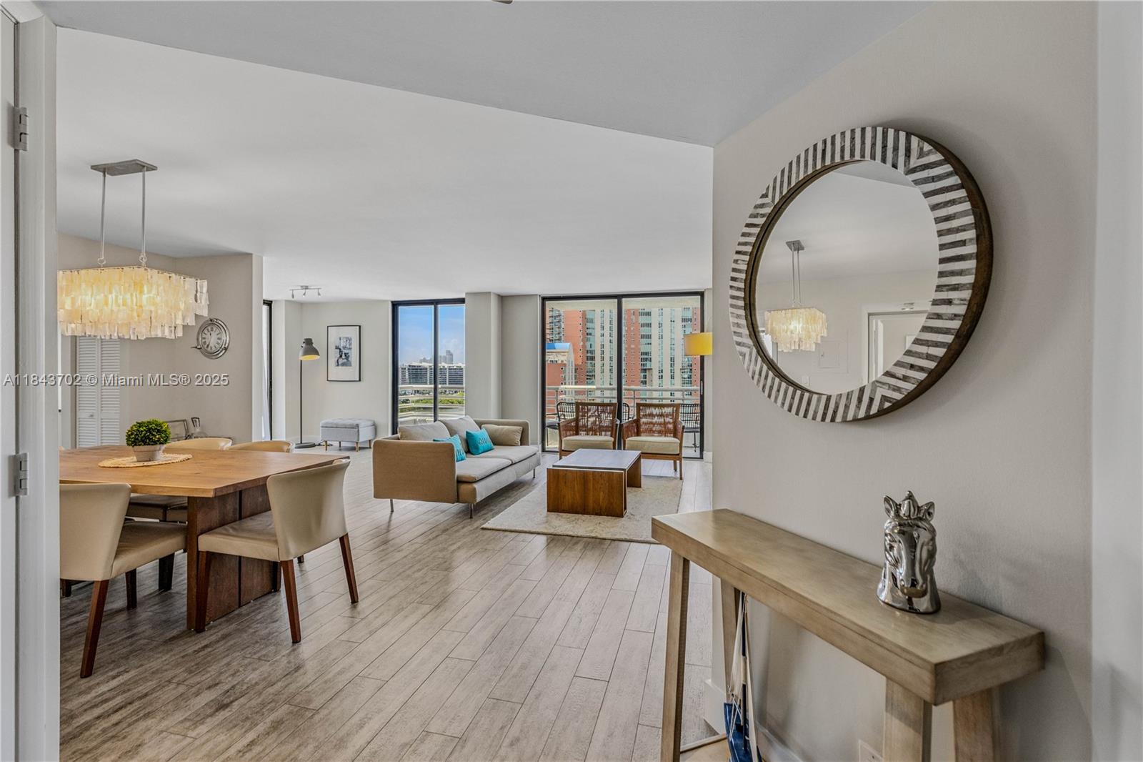 Perched on the 19th floor, this 2-bedroom, 2-bath condo offers stunning views of the Intracoastal, Atlantic Ocean, and pool area. Spanning 1,181 sq. ft., the open layout is bathed in natural light, with large windows showcasing the beautiful scenery. The kitchen features modern appliances, including a dishwasher and microwave, while the full-size washer and dryer add convenience. Both bedrooms are spacious, with walk-in closets for extra storage. Located in a secure building with amenities like a pool and spa, this condo provides the perfect balance of comfort and style for modern living.