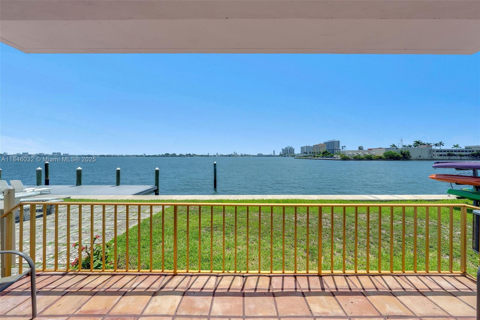 MILLION DOLLAR VIEW on Biscayne Bay. Waterfront dining on your private balcony. Flooded with natural sunlight the apartment boasts windows on all sides. Three entry points. Feeling more like a private home than apartment. Beautiful ground floor corner 2 bedroom 2 bath updated apartment in much sought after North Bay Village on Harbor Island. Split bedroom floorplan with updated modern bathrooms and kitchen. Closets galore. Sliding doors from your living room to your private balcony overlooking the water. Pool and lounge area/courtyard and dock a few feet away. Laundry just outside your kitchen door. Building recertification complete. No special assessments. Insurance. Resident parking permit spaces in front of building. Walk to shopping and restaurants. Tranquil Island Living