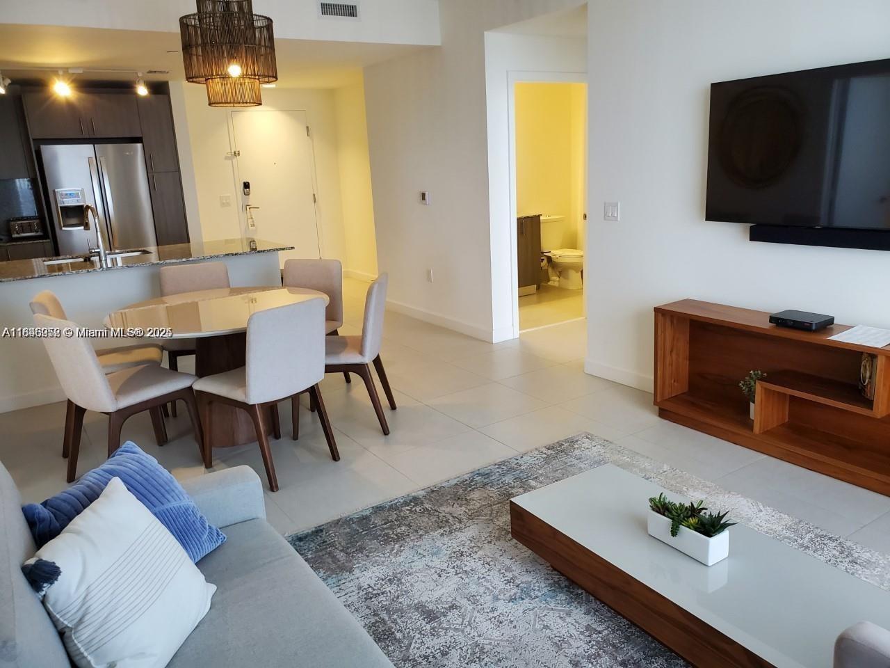 BEST VIEW !! Perfect for investors this 3 bedrooms 3 full baths in LINE 01 is FULLY FURNISHED and has Split floor plan (2 keys) and two separate entrances, allow owner to rent it as 2 bed and a one bedroom separately, Airbnb, short term rentals of 7 days minimum allowed. Styled & furnished down to the silverware and towels curated by renowned interior designer Adriana Hoyos. Floor to ceiling impact doors and windows assure a bright feel for watching days turn to nights, large L-SHAPE BALCONY. Stylish common areas, combine the beauty of nature w/ the comforts of inside spaces bringing them to new heights, 24-hr valet, sauna, fitness center, Pool, Storage + 2 parking spaces.