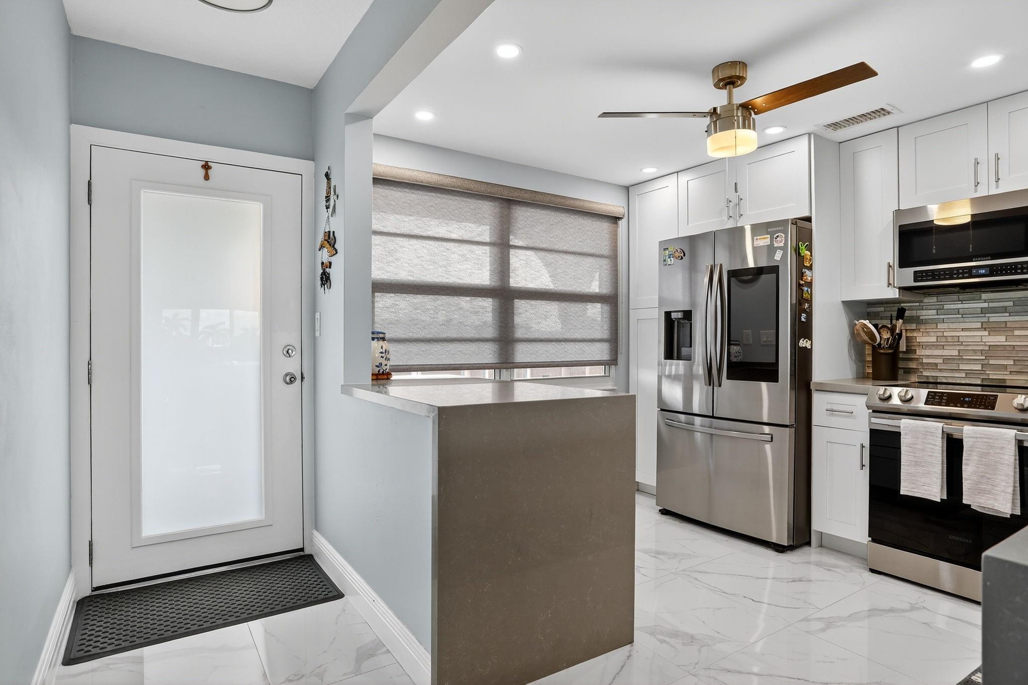 THIS IS IT — WYNMOOR'S MOST BREATHTAKING VIEW of the golf course, lake, and clubhouse! This fully remodeled 2BR/2BA condo stuns with sleek porcelain flooring, a gorgeous designer kitchen with quartz waterfall countertops and breakfast bar, shaker cabinetry, and top-tier stainless steel appliances. Both bathrooms have been tastefully updated, and there's a washer/dryer right in the unit. Impact windows throughout. Set in a guard-gated, 24/7 secured community with unbeatable amenities: a brand-new pool with BBQ area, 18-hole golf course, clubhouse, restaurant, tennis & pickleball, a 962-seat theater, fitness & wellness classes, billiards, 18 heated pools, a resistance pool, hot spa, shuttle service, and 80+ clubs to help you live your best tropical life!
