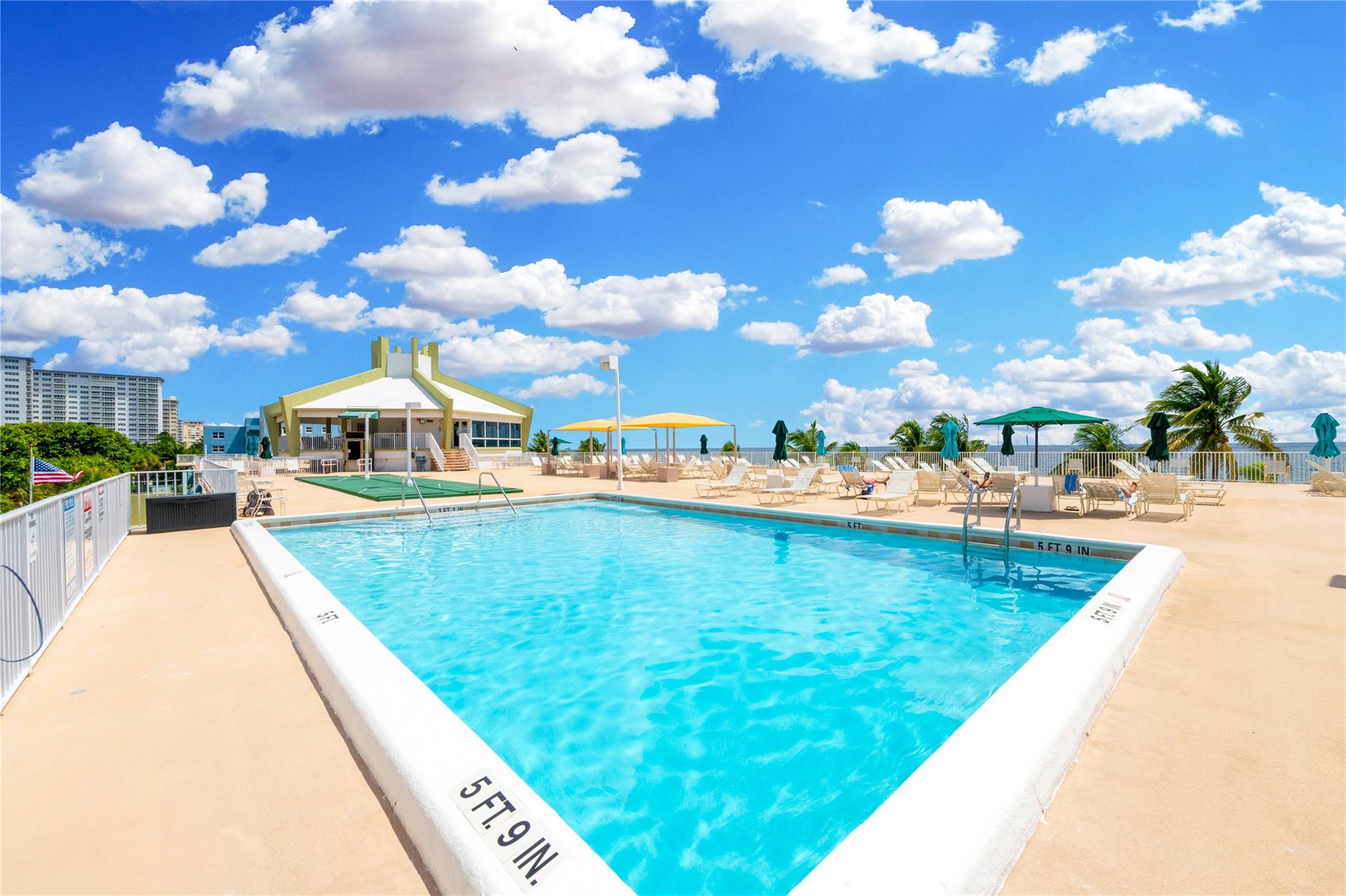 Enjoy coastal living in this beautifully maintained 2-bedroom, 2-bathroom condo just steps from the sand in vibrant Pompano Beach. This unit features a blend of tile and laminate flooring throughout, offering easy maintenance and comfort. Resort-Style Amenities Include: Beachfront recreation center with BBQ picnic area, Two fully equipped fitness centers, Two swimming pools, Billiard room, Clubhouse, On-site café serving breakfast and lunch, Bar/lounge, 24/7 secure lobby with guard, Private garage parking with elevator access. Cable and internet included in the monthly fee. Perfectly located within walking distance to shopping, dining, the fishing pier, Tiki bar, and all the entertainment Pompano Beach has to offer. The building is currently undergoing concrete restoration.