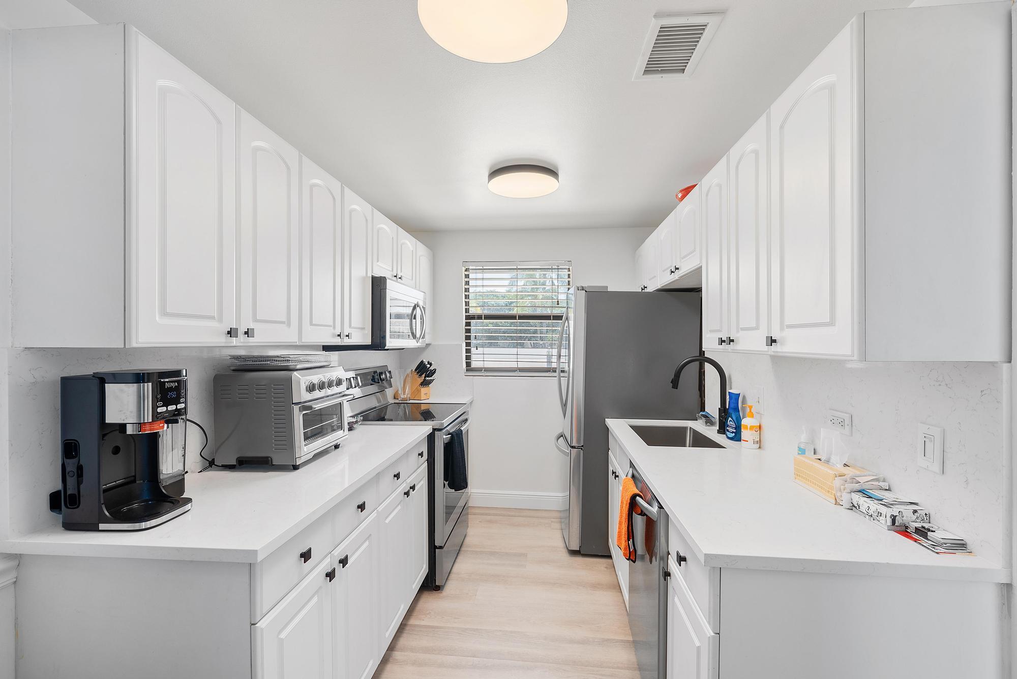 Step into coastal comfort with this beautifully updated 1-bedroom, 1-bath condo nestled in the heart of Old Port Cove, one of North Palm Beach's most desirable waterfront communities. Perfectly positioned on the ground level, this charming residence offers rare walk-out access directly to the pool deck and surrounding amenities, creating the feel of a private villa rather than a typical condo. Whether you're entertaining guests or simply enjoying the Florida lifestyle, this unique feature enhances both convenience and appeal.Inside, the home has been thoughtfully renovated to reflect a clean, modern aesthetic.
