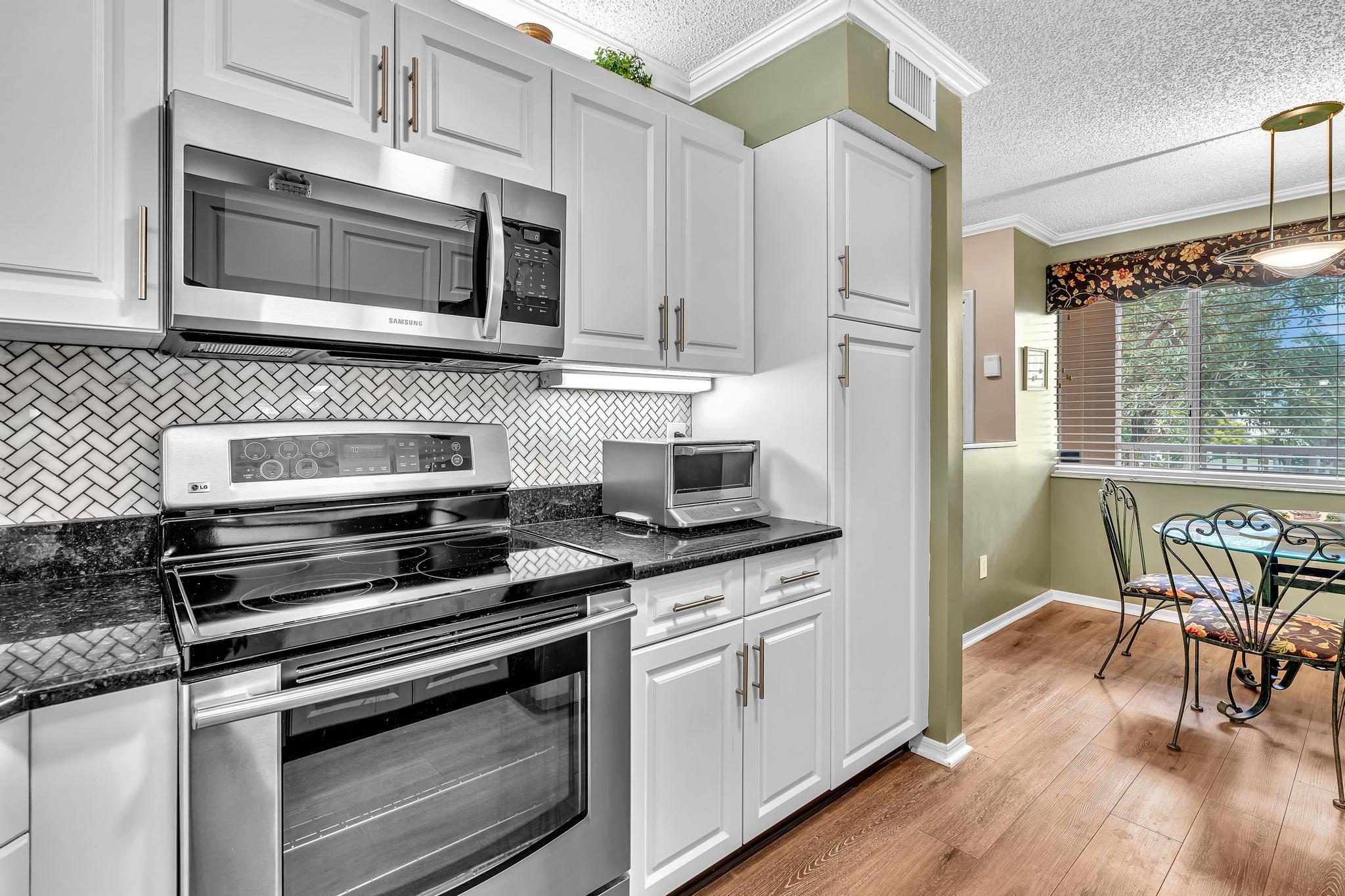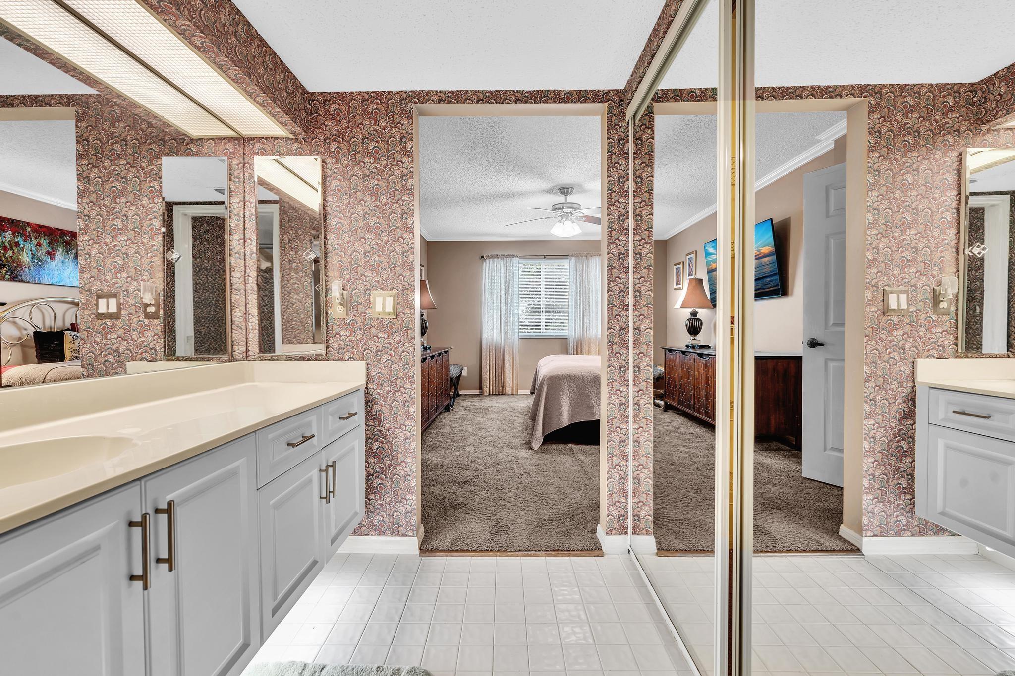 Live in paradise* As soon as you step into this unique home, you feel the warmth and welcoming invitation! One of a kind! Rare find!! Two beds, two baths. A gorgeous water view. Offering a stunning new white kitchen with cabinets, a lovely granite countertop & a unique new backsplash. Stainless steel apps, including a new fridge & garbage disposal. New wood flooring in the kit.& hallway & 2nd bedroom. Updated the master bathroom vanity's cabinets. An extended living room provides space, allowing for versatile use as a family room/office. Great for entertainment. Magnificent open layout & a beautiful split floor plan offer a comfortable living experience. The master suite features spacious walk-in closets, a light & bright space—an attractive, quiet community with a pool & small clubhouse.