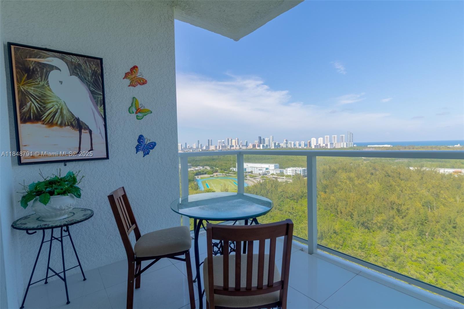 This ample 3 Bd/ 3 Br Condo features 1,801 Sq Ft of living space, with glass window balcony overlooking the Oleta Park and Miami Skyline. Enjoy stunning sunrises and ocean breezes from your private balcony. Open kitchen with Italian cabinetry, granite counters, and stainless-steel appliances. Primary suite includes walk-in closet, dual sinks, Jacuzzi tub, and separate shower. Washer and Dryer inside apartment. Includes 1 assigned garage space + valet. This condominium offers many amenities such 24/7 security, concierge, heated pool, clubhouse, fitness center, tennis courts, children’s playroom, toddler & dog parks, clubroom, lounges, & valet.