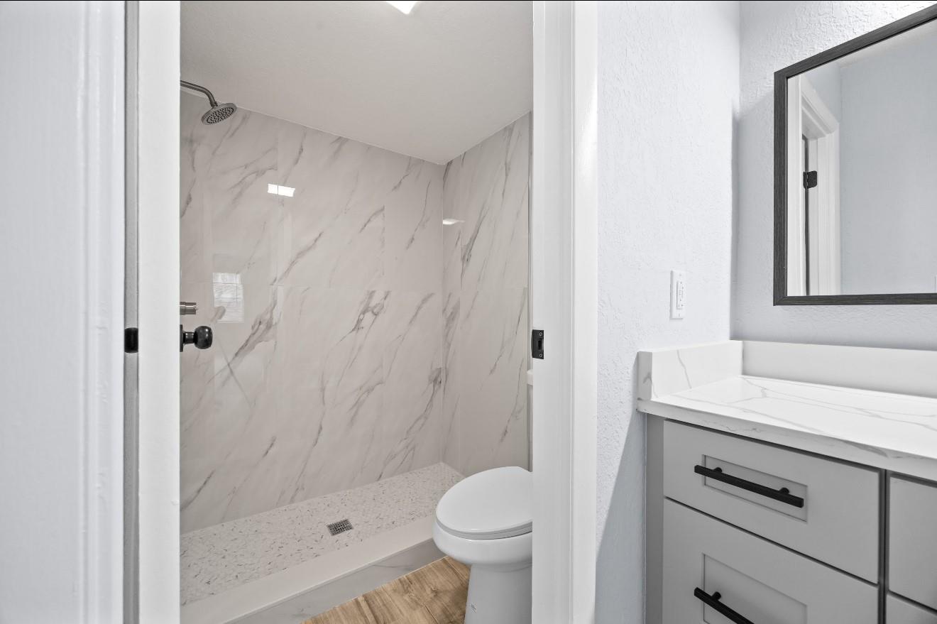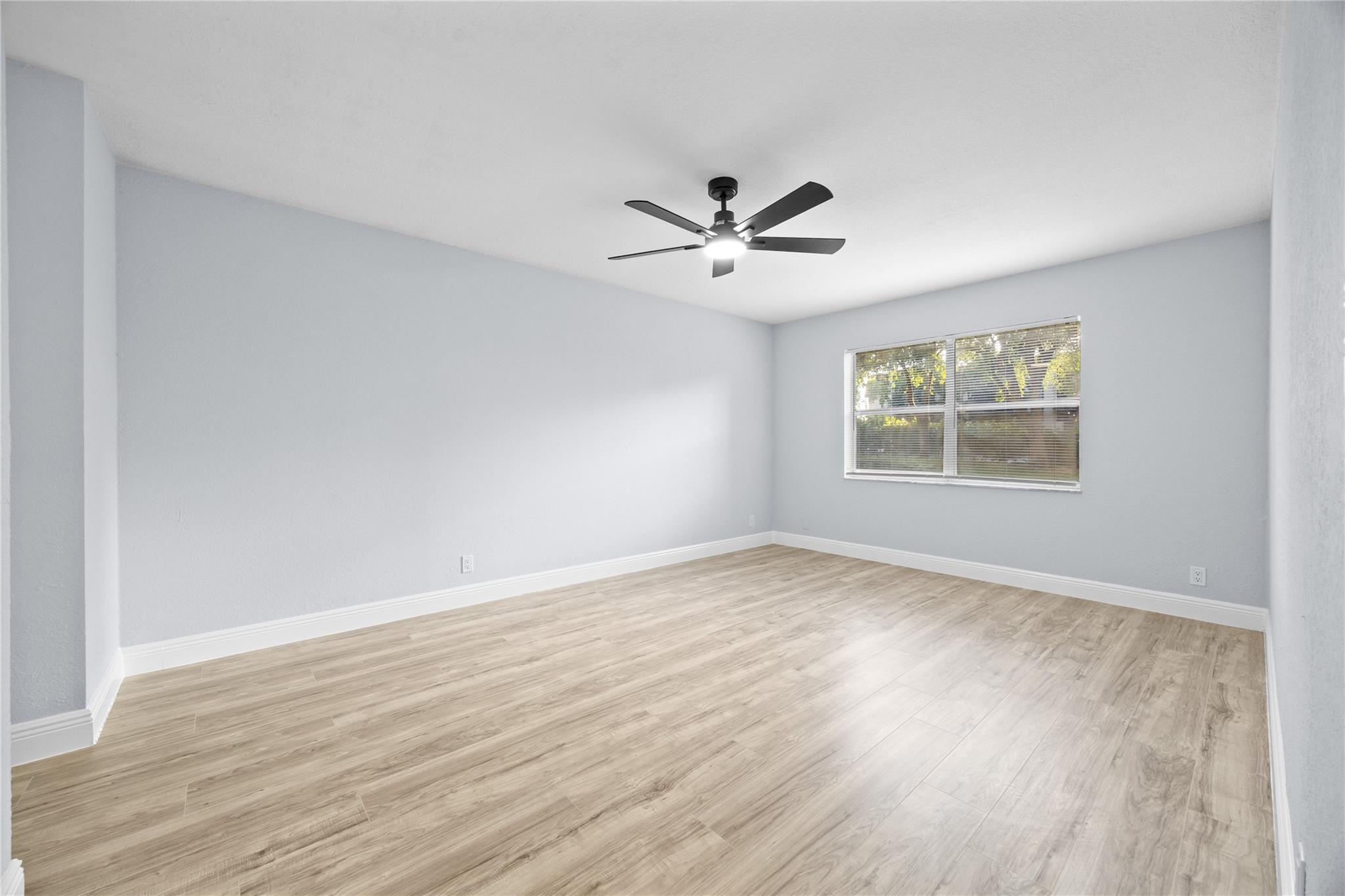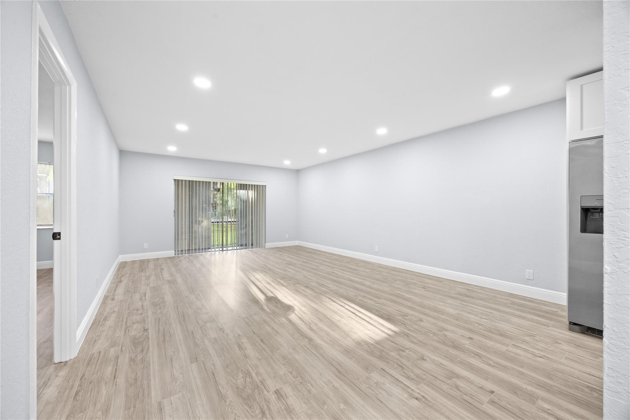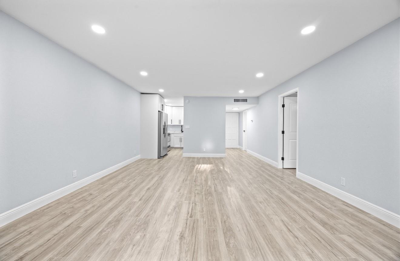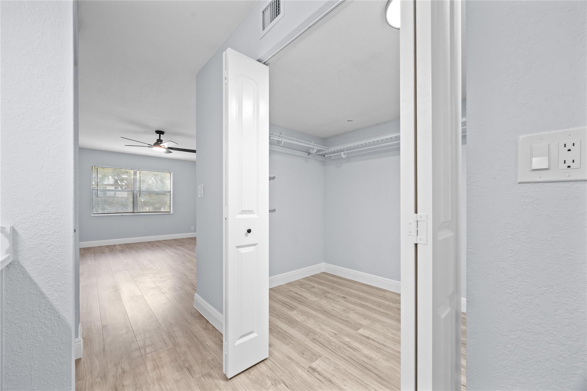 Beautifully Remodeled 1-Bedroom in Active Gated Community Welcome to this stunning ground-floor 1-bedroom, 1.5-bathroom unit, fully remodeled w/ brand-new laminate flooring throughout, a sleek white kitchen w/ quartz countertop, stainless steel appliances, & recessed lighting under smooth ceilings. The open living space flows seamlessly to a screened-in patio overlooking the sparkling community pool. The spacious primary suite features a large walk-in closet and an elegantly updated en-suite bathroom with modern fixtures. Additional highlights include a stylish powder room for guests and plenty of storage. Set in an active, gated community offering scenic walking trails, peaceful lakes, and a vibrant social scene, this turnkey unit blends comfort, style, and convenience.