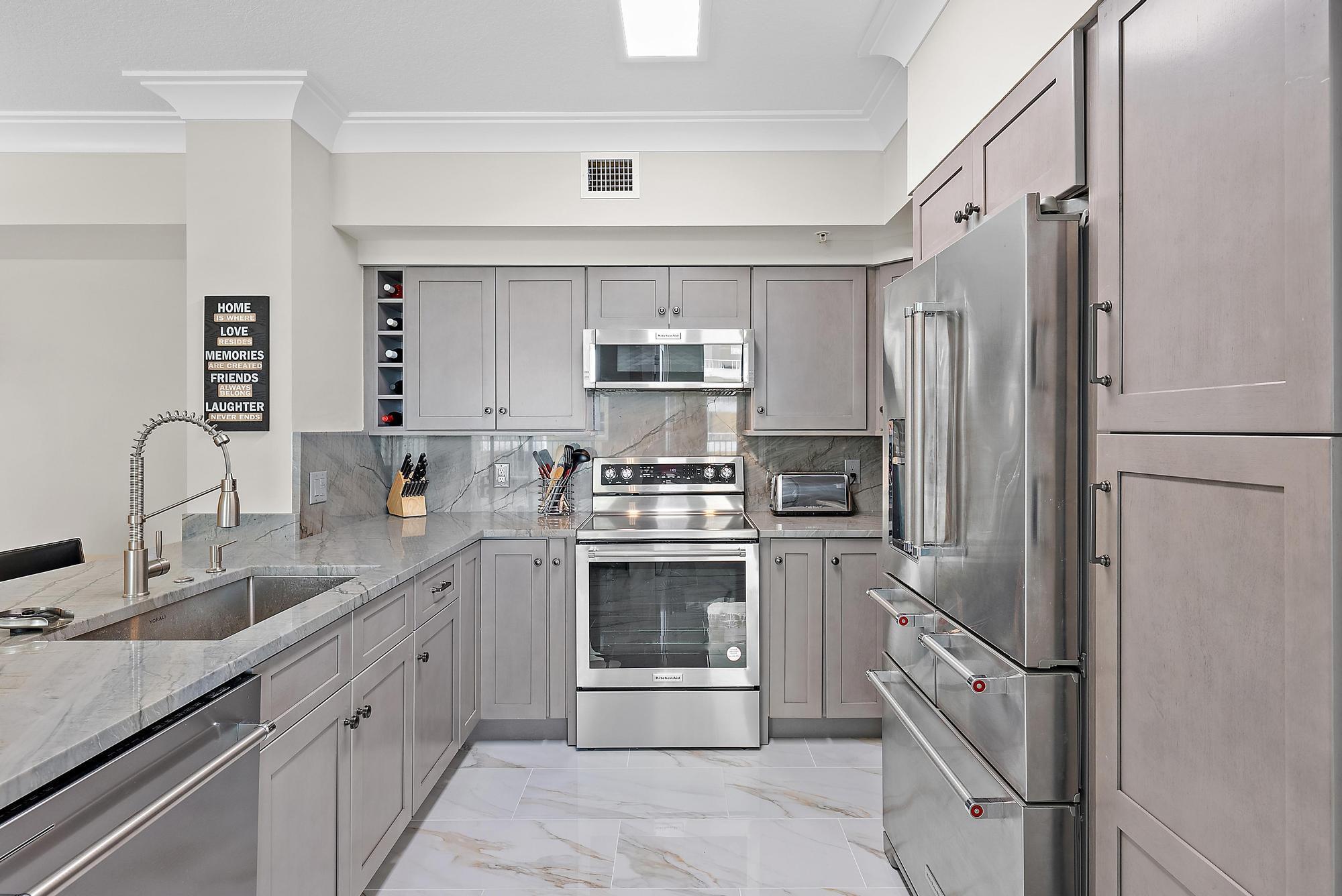 Experience the best of waterfront living in this beautifully updated corner unit located in the highly desirable Marina Village community. This spacious condo features (2) ensuites, (2) side-by-side covered garage parking spaces, perfect for the executive or seasonal lifestyle. Just steps from the marina & (2) popular seafood & bar waterfront restaurants. Location offers unbeatable convenience & coastal charm. 2024/25 renovations throughout the unit, ceramic 36x16 tiled flooring runs through main living areas, while the bedrms offer LVP flooring, thick baseboards, trim & crown molding add a high-end feel, custom ceiling fans & lighting fixtures, the kitchen is designed for both style & function, w/quartz countertops w/waterfall edge, custom cabinetry & matching SS appliances.