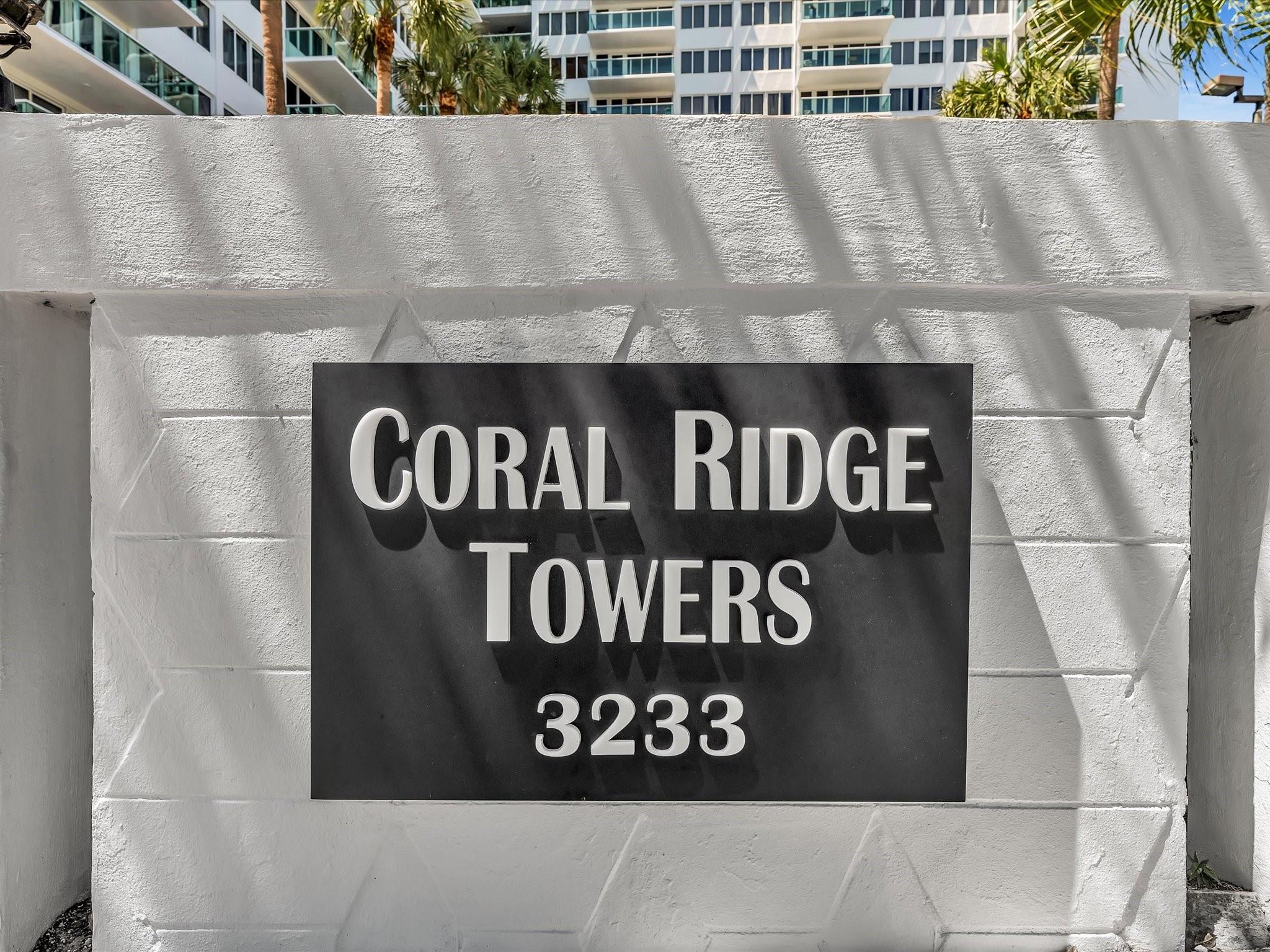 AMAZING VIEWS WITH SOUTHERN EXPOSURE FROM THE 9TH FLOOR. Seeing both the ocean and the intracoastal from the same window doesn't happen very often - you'll have that here. This property offers incredible potential for a buyer looking to customize their living space or move in and enjoy your residence with no changes. Coral Ridge Towers is a resort style community on 5+ acres with 24/7 security and a beautiful pool directly on the intracoastal. Close to the water taxi stop, restaurants, retail, golf, boating and 20 minutes to the airport. Fitness center, community room and social activities. Maintenance includes water, sewer, trash, cable and parking. 55+ cash only, no renting. $65,760 gross annual income required.