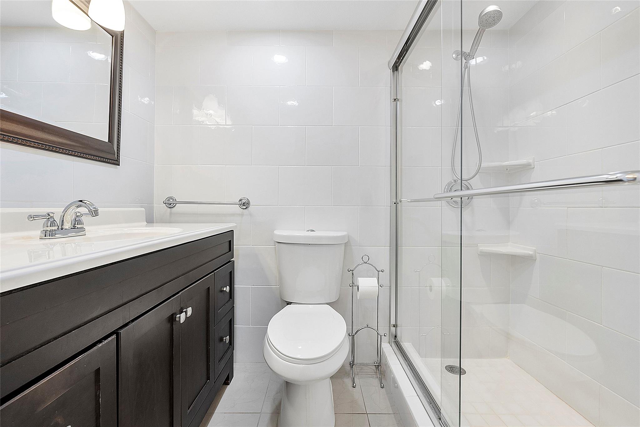 Bright and spacious 2-bedroom, 2-bathroom home, offering stunning and serene garden views. Open kitchen with ample countertop space. Tile flooring throughout the unit, AC was replaced in 2018, with a new water heater installed last year. The master bedrooms feature two walk-in closets, the unit includes an in-home washer and dryer for added convenience. Located in a gated 55+ community, residents enjoy fantastic amenities, including a clubhouse, gym, billiards, tennis courts, and a sparkling pool. The community is also conveniently close to public transportation, grocery stores, and shopping. Monthly fees include internet and cable. The building is in the final stages of its 40-year certification, featuring a new roof, fresh exterior paint, building restoration, and an updated elevator.