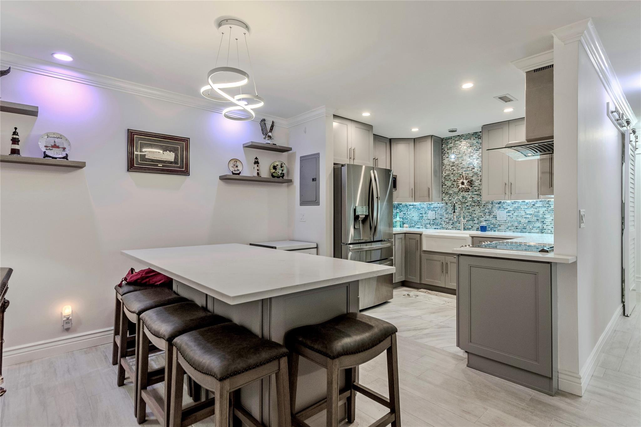 STUNNING turnkey unit & Boaters Dream. steps from the intracoastal & pool with bar. This 2/2 condo was completely remodeled by current owners! kitchen opened up and upgraded with high end LG appliances, under cabinet lighting & large island! View of canal from your enclosed porch, tile/wood flooring throughout, brand new bathrooms, LG washer and dryer in unit, impact windows, new a/c and hot water tank, automatic patio shades and smart LED lighting. Bay Colony Club is a hidden gem in Ft Lauderdale. Gated community with 24 hour security! dockage for up to a 50ft boat @ 2.50 a foot!! Amenities include 4 Pools, pickleball courts, tennis, 3 clubhouses, shuffleboard, 2 fitness centers and private dockage. Incredible location minutes from the beach, restaurants, shopping and more!