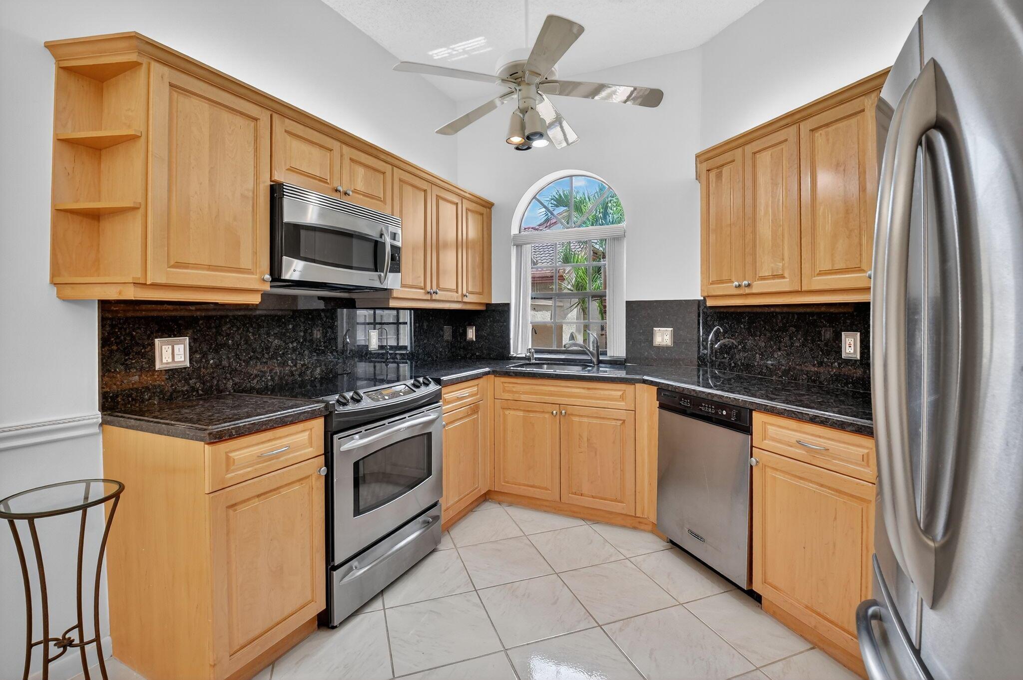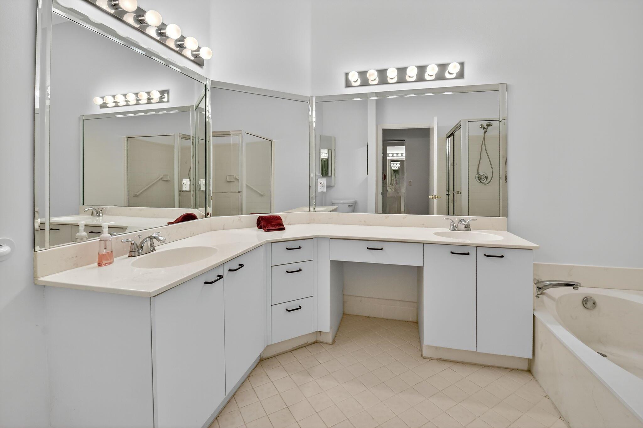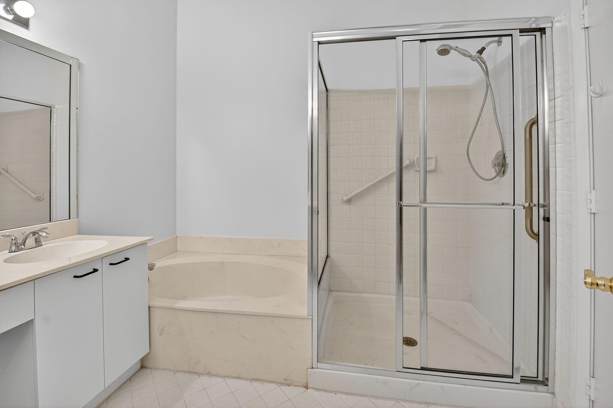 This Grandi model condo boasts its own private elevator and private staircase just inside the front door. Once upstairs, you will be greeted by a freshly painted home with soaring vaulted ceilings and a bright, open layout designed for comfortable living and entertaining. The generous floor plan offers two bedrooms plus a den that can easily be converted into a third bedroom to suit your needs. The updated, spacious kitchen is sure to inspire your inner chef. Features include granite countertops and matching backsplash, stainless-steel appliances, a double oven, a large pantry, and abundant storage space. Retreat to the master suite, which offers a large walk-in closet, linen closet and en-suite bathroom, complete with dual sinks, a vanity, a relaxing Roman tub, and walk-in shower.