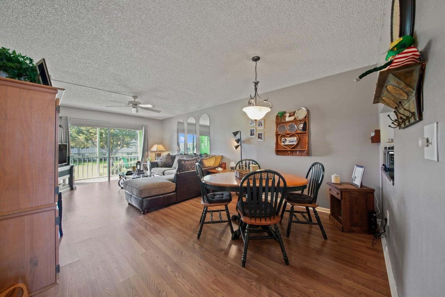Welcome to this charming 2-bedroom, 2-bathroom condo nestled in the serene community of Sandalfoot. This inviting residence boasts neutral flooring and smooth walls throughout, creating a canvas ready for your personal touch. The open floorplan seamlessly connects the spacious living area to the kitchen, which features classic white cabinets and a convenient pass-through to the dining area. Enjoy casual dining in the cozy breakfast nook or entertain guests in the elegant dining space. The primary suite offers a tranquil retreat with his and hers closets and an en-suite bath for added convenience and privacy. Step outside to the screened balcony and soak in the picturesque lake view, perfect for relaxing mornings or evening gatherings.