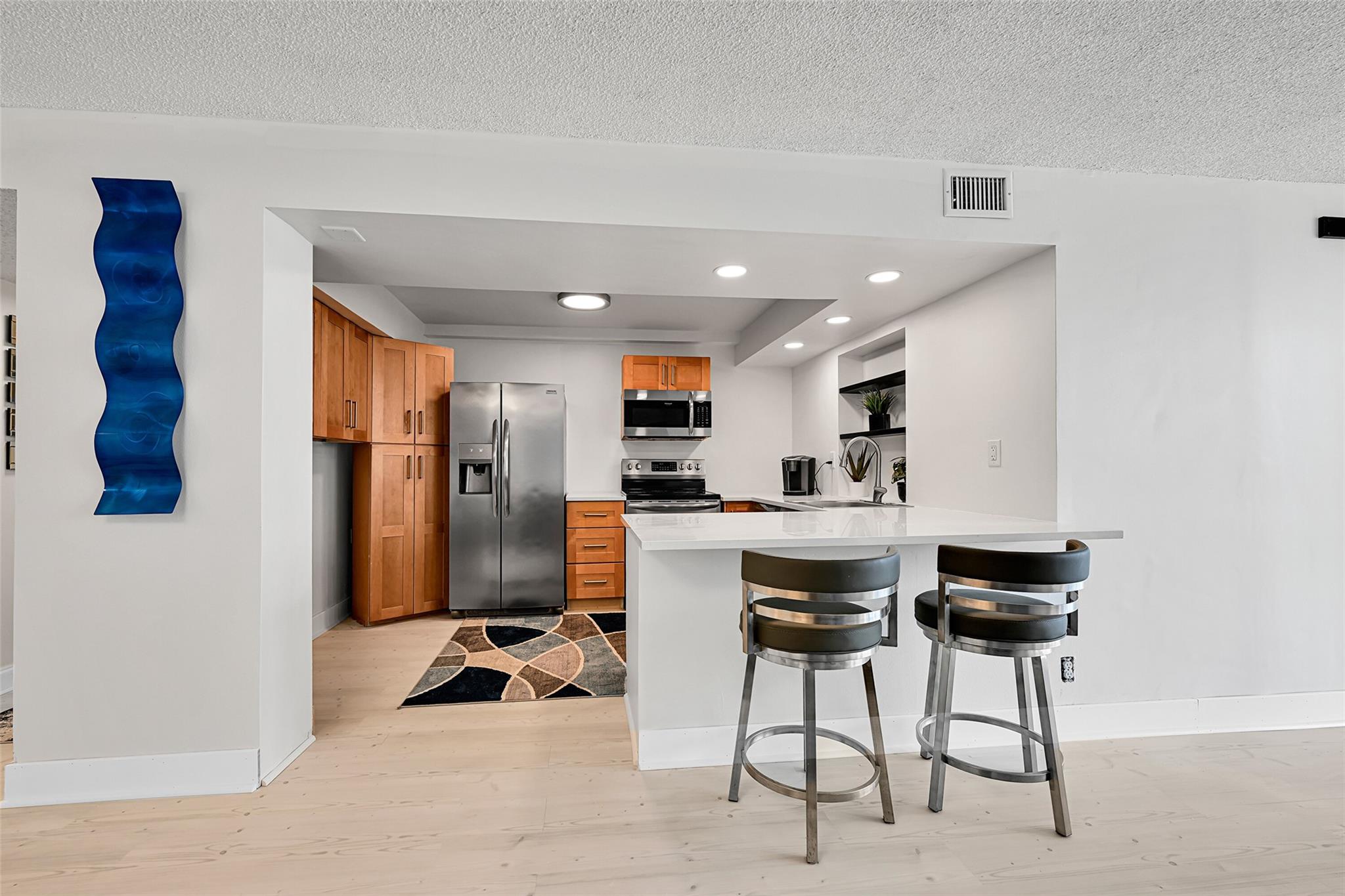 NO ASSESMENTS AND PRICE IMPROVEMENT. Enjoy breathtaking city views from this penthouse-level 2 bed, 1.5 bath. Building located on the intercoastal and just minutes from South Florida’s world-renowned beaches! TONS OF UPGRADES! The condo features floor-to-ceiling windows, new flooring throughout. The updated kitchen boasts sleek shaker cabinets, new quarts countertops, and stainless steel appliances. New A/C, New Electrical Panel. The spacious primary suite includes stunning views and an ensuite bath. Step out onto your private balcony to catch both sunrise and sunset from the sky. Located in a secure, amenity-rich building offering a sparkling Intracoastal-side pool, fitness center, and tennis courts. Ideally situated near premier shopping, dining and much more.
