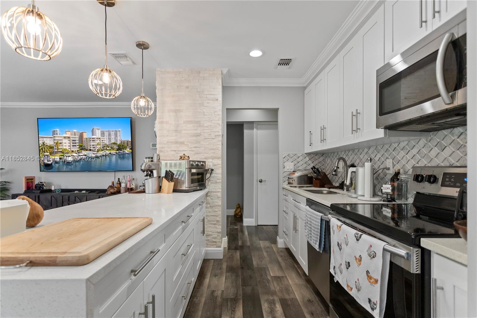 This Spectacular waterfront corner 2/2 on Golden Isles Bay with w/ocean access & marina. Wrap-around balcony w/panoramic water views. Open gourmet kitchen w/quartz waterfall island, white shaker cabinets, backsplash & new SS appliances. Wood floors, walk-in closets, a large pantry, and high-impact windows. Amenities: heated pool, BBQ, entertaining area, 2 storage units, and free laundry facilities next to the unit. 40-year inspection passed. Walk to the beach, shops, and dining. Dock up to 48’ boat ($3.50/ft, waitlist). No rentals. Easy to show.