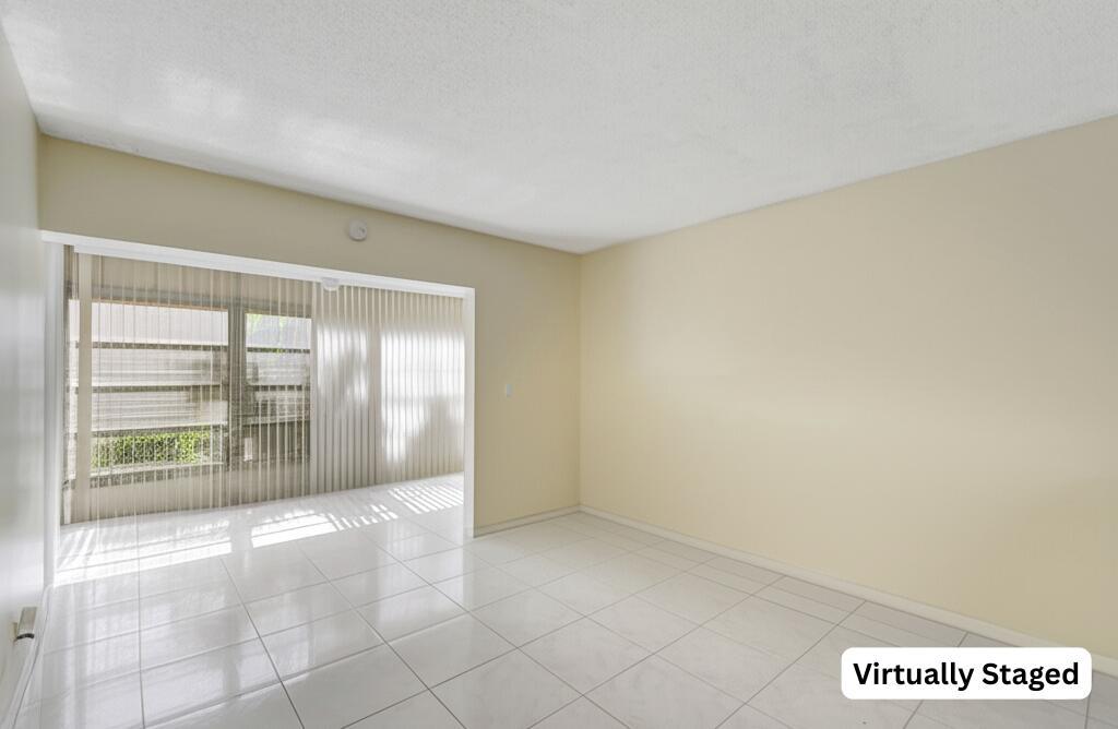 Welcome home! This move-in ready 1 bedroom, 1.5 bath condo is tucked inside a beautifully maintained 55+ community and has all the charm and functionality you've been looking for. Step into a bright and welcoming first-floor unit with easy-care tile floors throughout, a practical kitchen with warm wood cabinetry and newer appliances, and roomy closets that keep everything tidy. The French door entry into the primary bedroom adds a touch of West Coast flair--clean, airy, and effortlessly stylish. The primary bathroom features a refinished combo tub and shower for a fresh, clean look. The enclosed Florida room--with brand new blinds--offers extra space to relax, read, or entertain. Plus, you're just steps from the laundry room for everyday convenience. Newer AC, too!