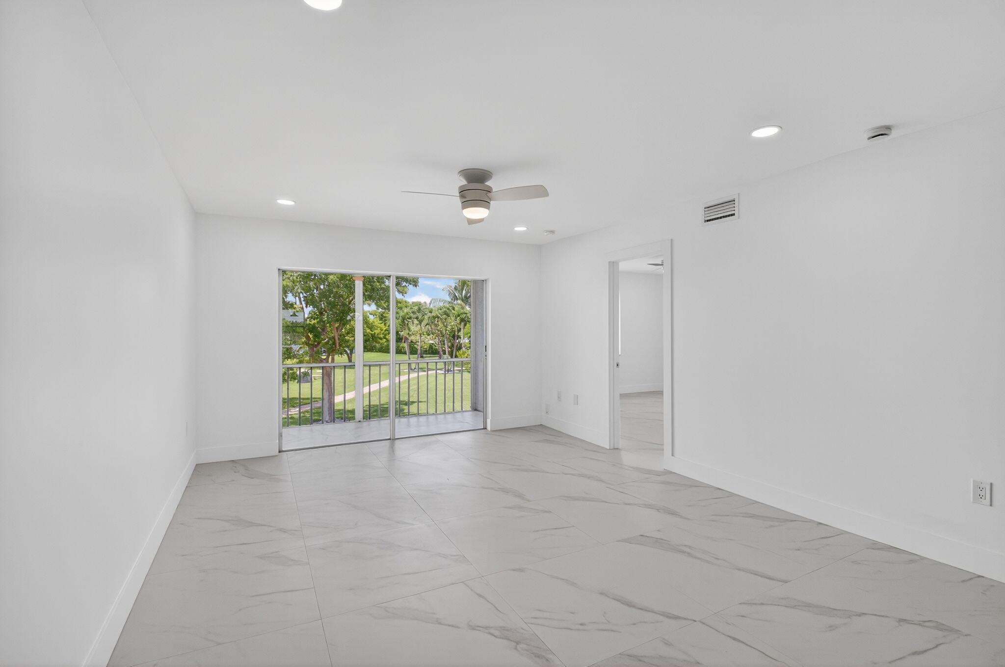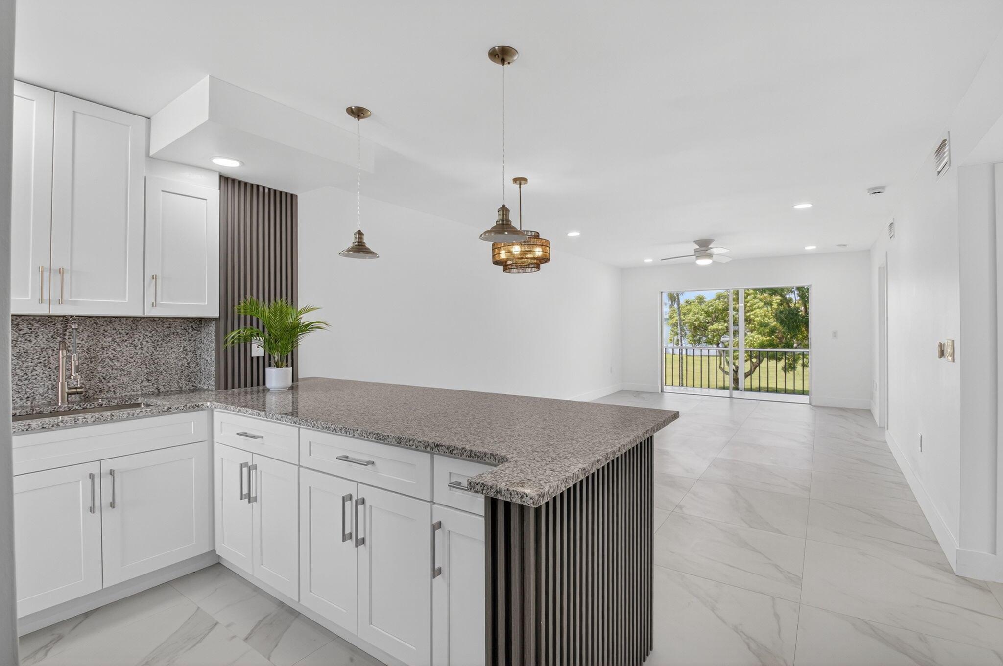 Seller offers OWNER FINANCING for this Magnificently updated 2 bedroom, 2 bath unit in well maintained 55 + community overlooking the garden beyond. Pristine condition, gourmet kitchen with granite counters and stainless steel appliances. Kitchen is open to the spacious great room with dining and living room areas. Screened patio where you can relax and enjoy the garden beyond. Primary bedroom features a lavish bathroom with shower and outfitted walk in closet. Spacious guest room with shower. Totally REMODELED, TOP TO BOTTOM, New AC, New Electrical Panel and high hats in every room. Porcelain tile throughout. No popcorn. Steps away from the state of the art saltwater pool. Close to major roadways, shopping and 20 minutes to the beaches. This exceptional unit is waiting for you!