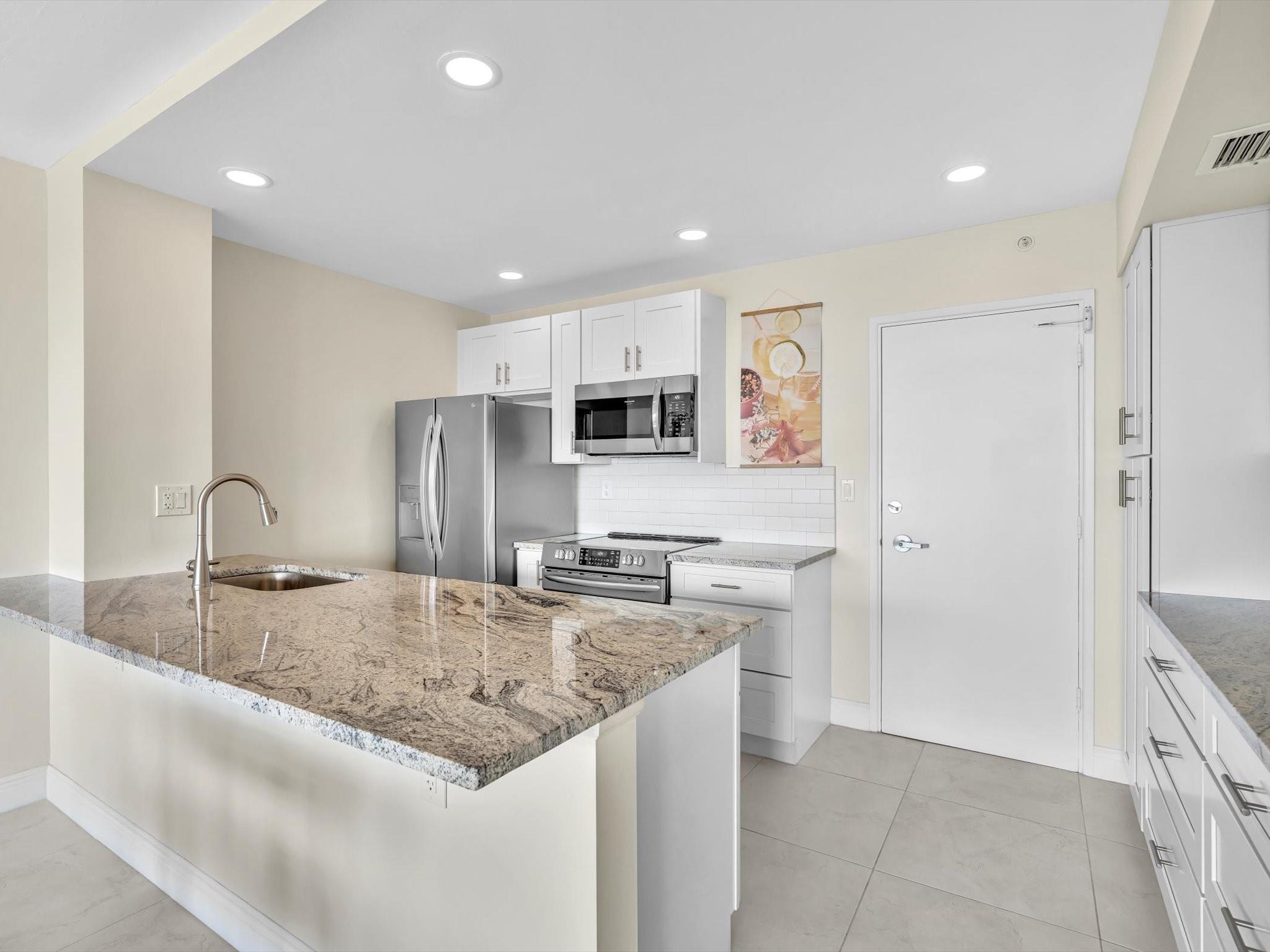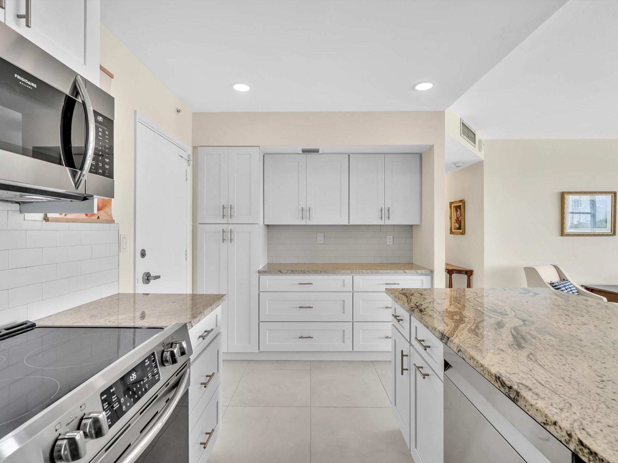 BEAUTIFUL MODERN RESIDENCE WITH OCEAN AND INTRACOASTAL VIEWS. Formal Entrance opens into casual elegance. Enjoy this newly designed chef's kitchen, perfect for entertaining or relaxing at home. Large porcelain tiles flow seamlessly from one room to the next. Watch the yachts go by below and experience the fireworks from your balcony without hearing the noise. Forget about fighting traffic because everything you need is right around the corner. ALL ASSESSMENTS PAID, FULLY FUNDING RESERVES. THIS BUILDING HAS AN EXCLUSIVE CLUBHOUSE ON THE INTRACOASTAL WITH A NEW DOCK AND RAISED SEAWALL. 55+ community on resort style 5+ acres. 24/7 security, heated pool, bocce ball court, fitness center. Concierge staff. Social activities