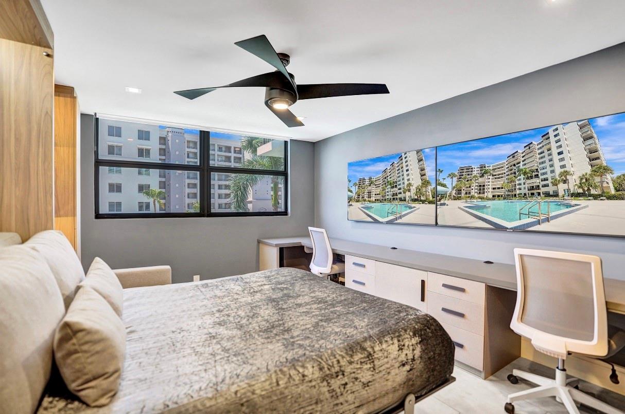 Experience refined coastal living in this fully updated retreat, showcasing high end materials & Luxury finishes throughout. Located in desirable east Pompano Beach, this residence offers a thoughtful split layout that blends comfort with style. Highlights include tailored design features, custom built ins, whole home smart tech, & a chef’s kitchen equipped with Quartz surfaces & top tier Miele appliances. Beautiful tile through the open layout Enjoy two spacious bedrooms and two spa inspired bathrooms, plus a private balcony with views of the pool and intracoastal. Your unit was fully permitted, building has had its 40 year certification. Your Unit Can be rented after one year of ownership and has the option do to short term leases. Walking distance to the beach and bike ride to the Pier!