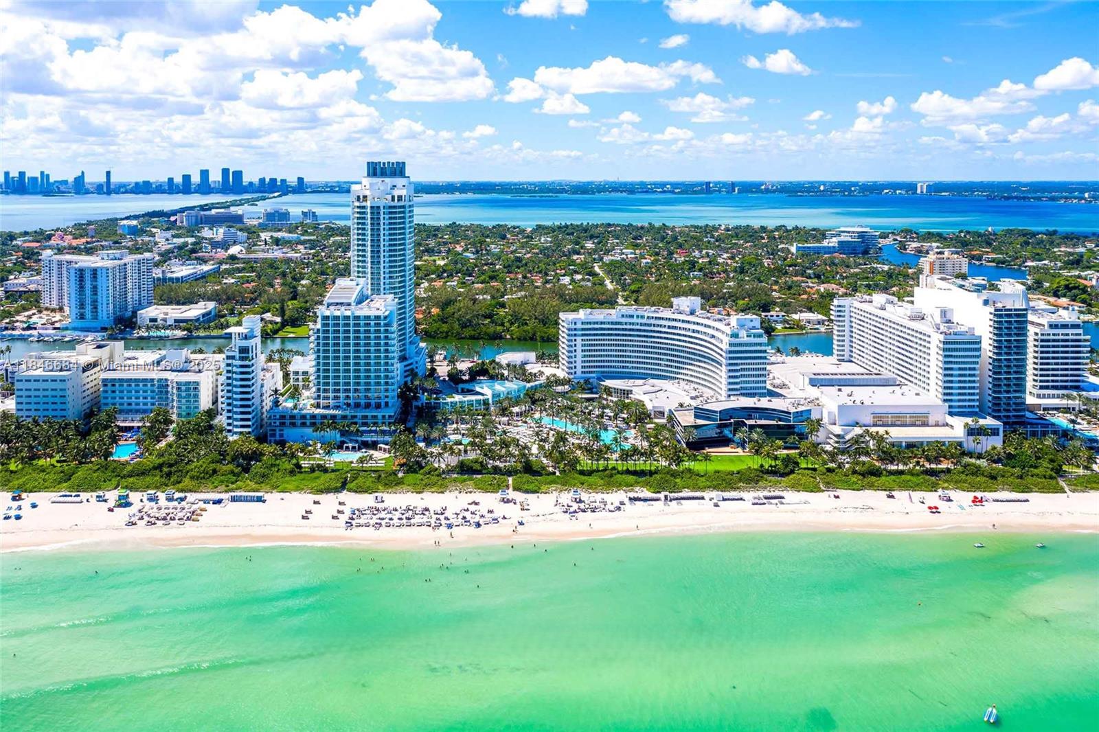 Enjoy stunning ocean, bay, and city views from this beautiful 2-bedroom, 3-bathroom corner residence on the 19th floor of the prestigious Fontainebleau II. This furnished unit offers a private foyer entrance, full kitchen, in-unit washer/dryer, and three balconies perfect for taking in the breathtaking scenery and coastal breezes. Fontainebleau II is located on 22 acres of pristine oceanfront and offers world class amenities including award winning restaurants, the iconic LIV Nightclub, Lapis Spa, a state of the arts fitness center. Maintenance fees includes A/C, electricity, valet and daily complimentary breakfast in the exclusive owners' lounge. Live the resort lifestyle in one of Miami Beach's most renowned destinations where luxury, service, and location come together seamlessly.